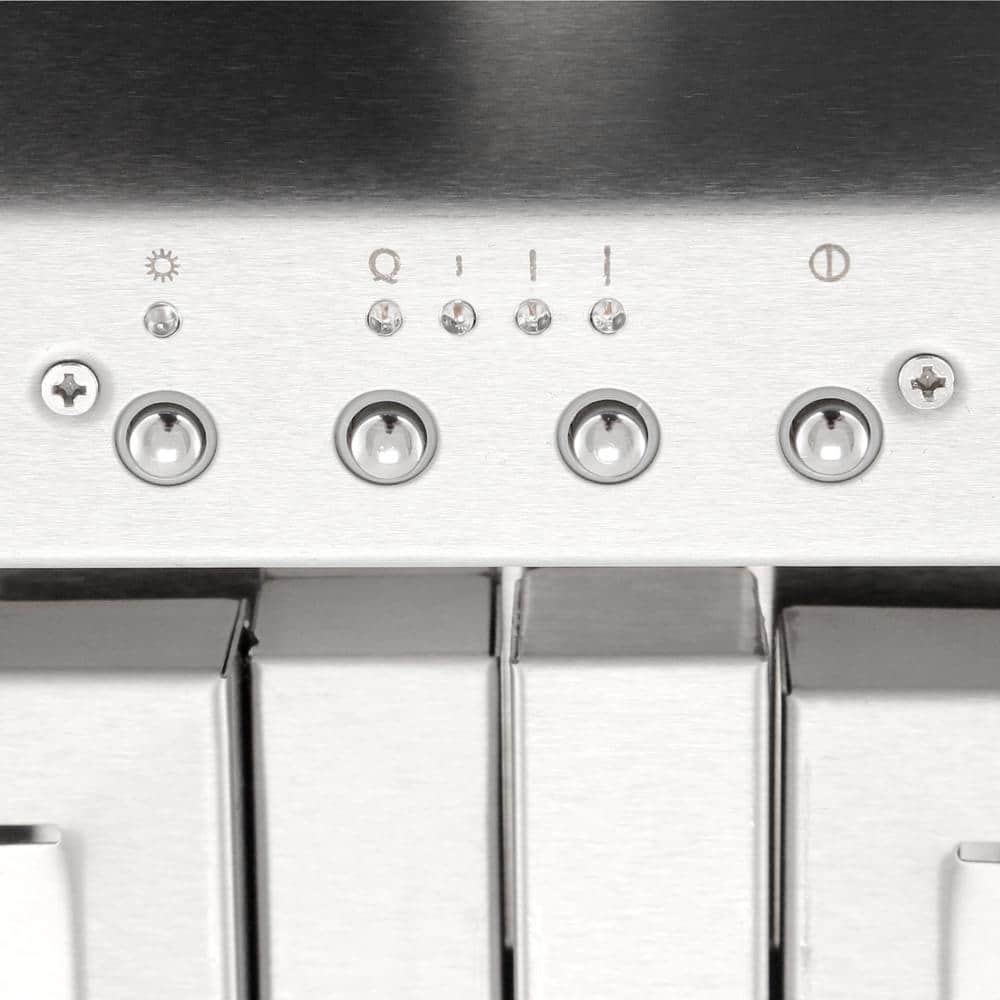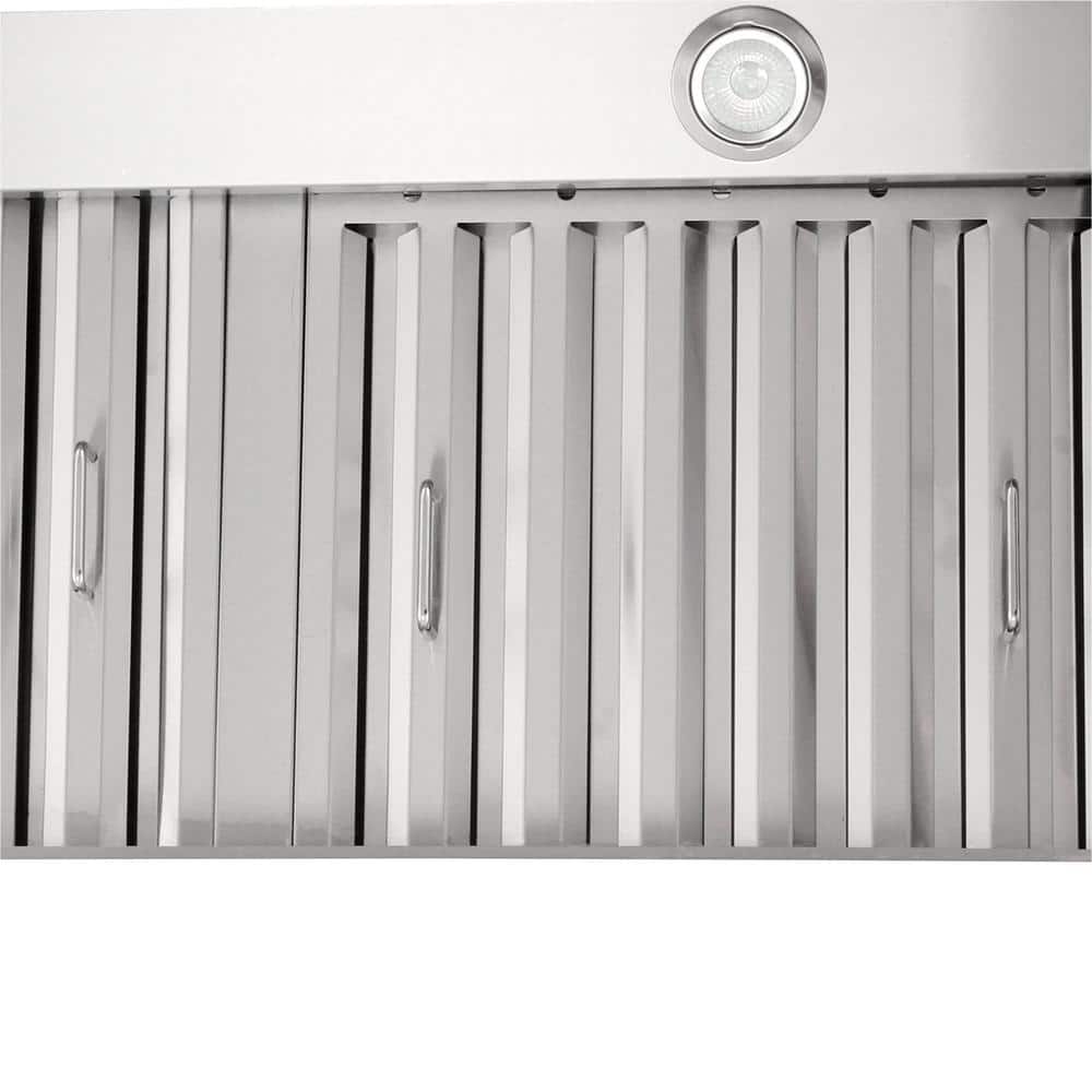 The all stainless steel professional style NXR Range hood is constructed to match the high powered BTU of professional style ranges. The key is our double squirrel caged ultra-quiet motor that allows super high powered 1200 CFM. The hood comes with a 4 speed electronic button control panel, with auto shut-off. Additionally, there are high powered lights to light up your cooking experience. Our stainless steel baffle filters are all dishwasher safe, so you can keep your range hood looking sleek.