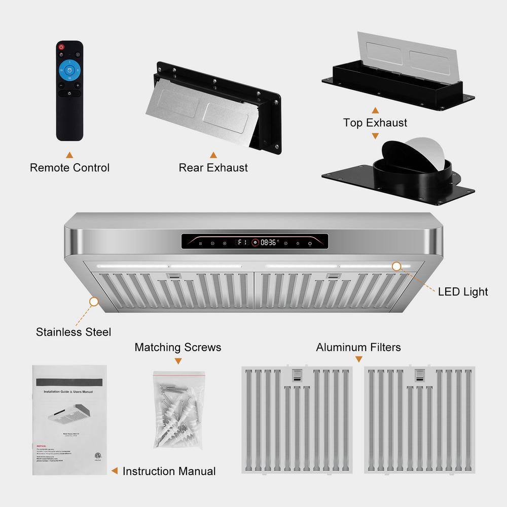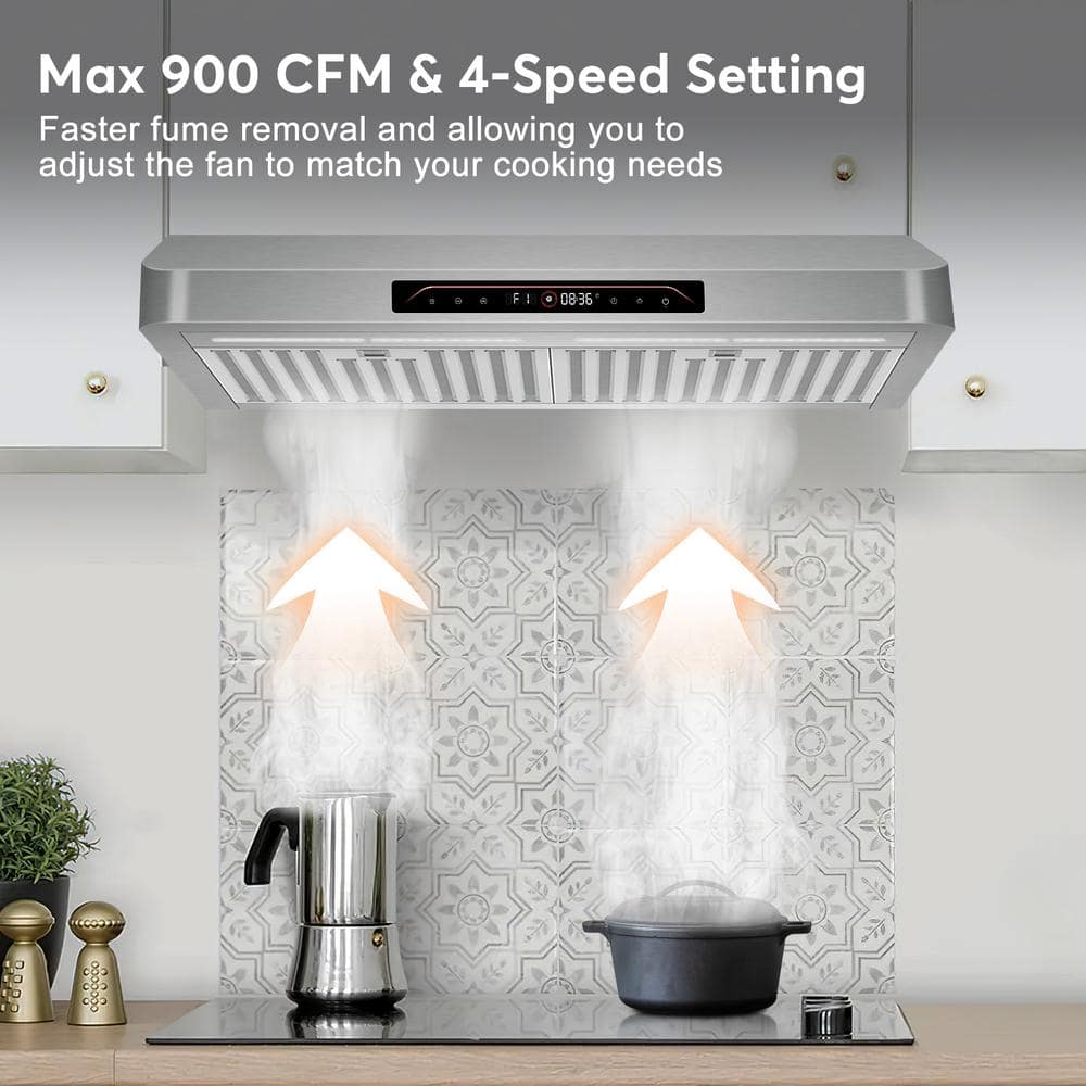 BRANO 30 in. Under Cabinet Range Hood with Voice/Gesture/Touch Control, 900 CFM Kitchen Hood Vent, 4-Speed Exhaust Fan