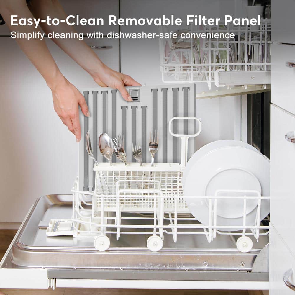 - Removable baffle filter is dishwasher safe for easy cleaning.