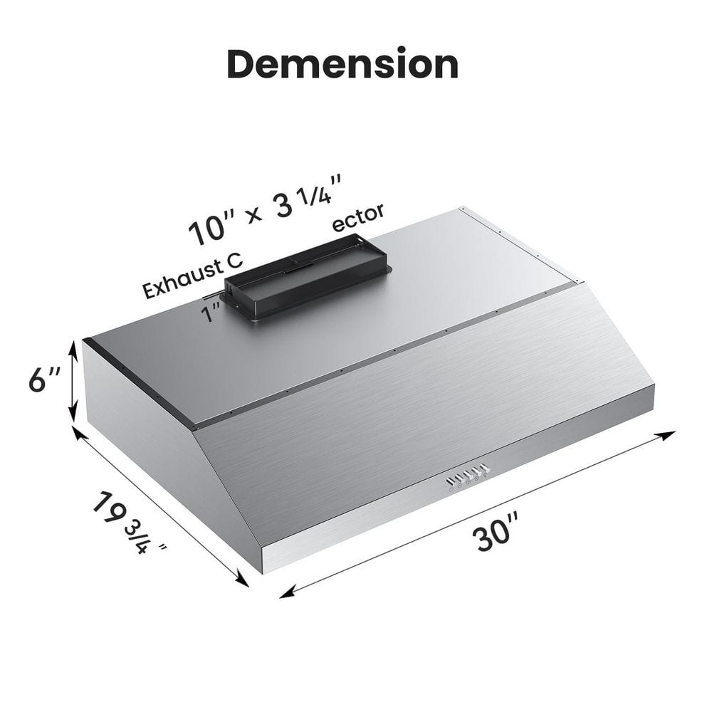 VIKIO 30 in. 600 CFM Ducted Under Cabinet Range Hood in Stainless Steel with Mesh Filters and Push Buttons