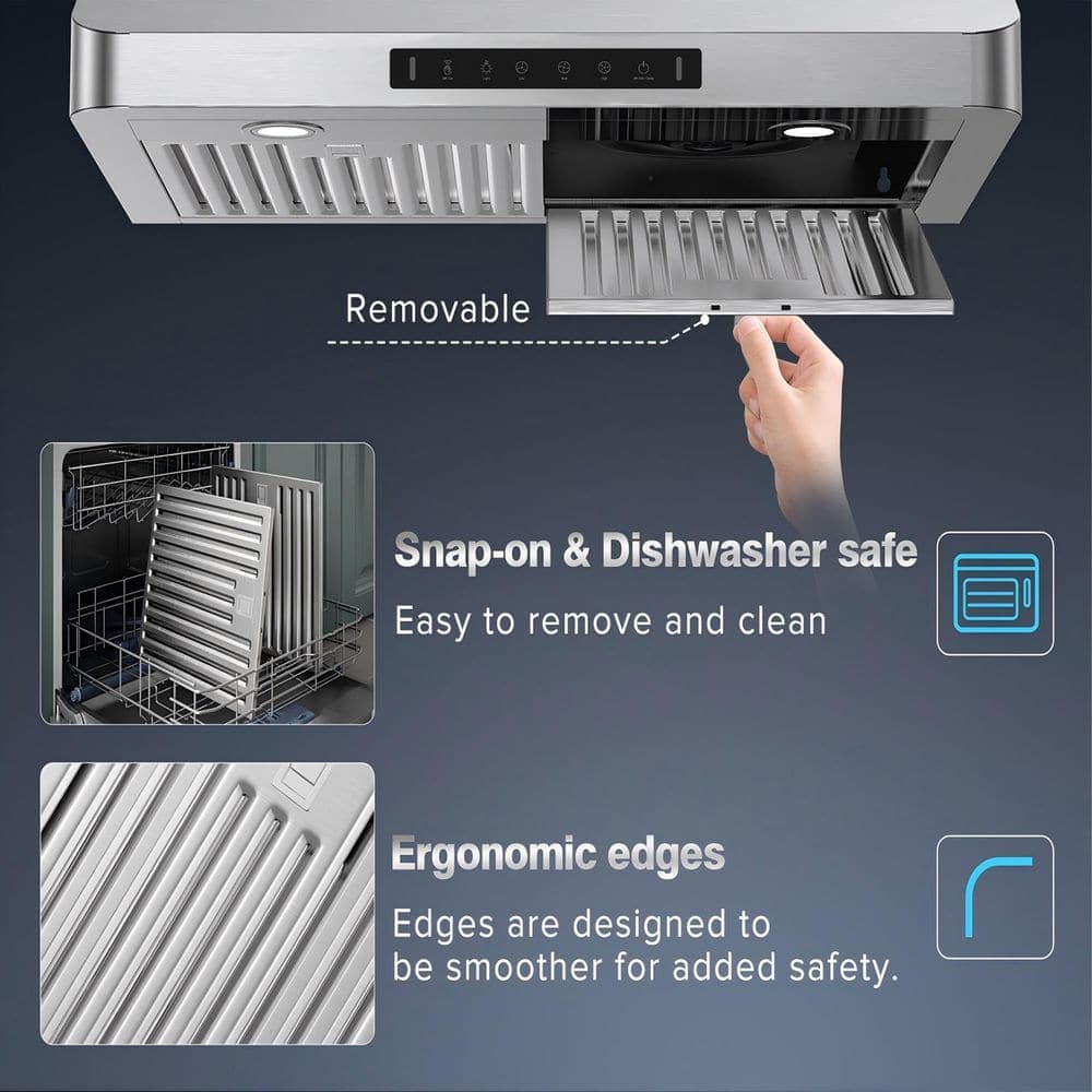 Elevate your kitchen with our powerful range hood featuring dual motors and 900 CFM suction for fast smoke and odor removal. Enjoy three speed settings, two control options (including gesture control), and flexible venting. The LED lighting and sleek stainless steel design enhance both functionality and style. ETL-certified for safe operation, this range hood ensures a confident culinary experience.
