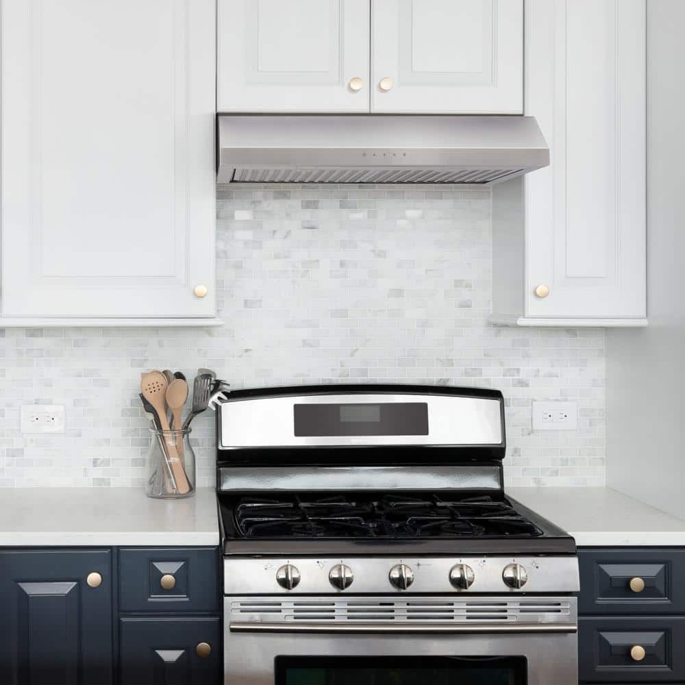The contemporary styling of this Vissani stainless steel, outdoor vented, under-cabinet range hood is certain to complement any kitchen design. Similarly, the powerful and quiet high performance blower in conjunction with three premium hybrid baffle filters is certain to eliminate smoke, grease, and cooking odors with utmost efficiency. Two energy efficient LED bulbs will illuminate the cooking surface with bright and evenly distributed light. Three commercial style, dishwasher safe, stainless steel and aluminum hybrid baffle filters fully enclose the bottom to make maintenance as easy as can be.