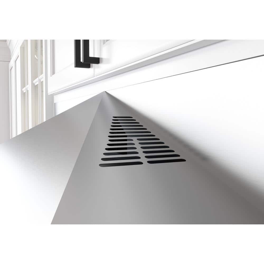 Classic, architectural lines meet at an apex to energize the familiar look of the chimney style under-cabinet hood. This expressive-yet-utilitarian design is upgraded with our Perimeter Aspiration System for the ultimate fusion of style and performance. Dual-level LumiLight LED lights illuminate the surface below while the 12″ depth ensures a true fit with popular cabinet styles.