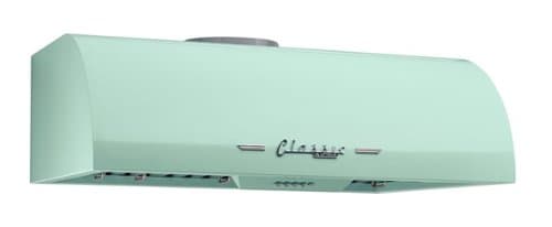 The 30 in. classic retro by Unique range hood transports you back to the 50's with its iconic retro design and chrome finished accents. The perfectly accompaniment for the 30 in. classic retro by Unique range. With two powerful motors, our retro range hood provides varied ventilation based on your needs. Simple effortless controls, two LED lights, stylishly designed and available in an array of eye-popping colors to choose from. Creates a unique classic retro kitchen today.