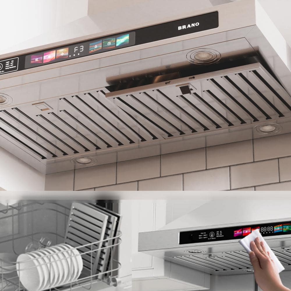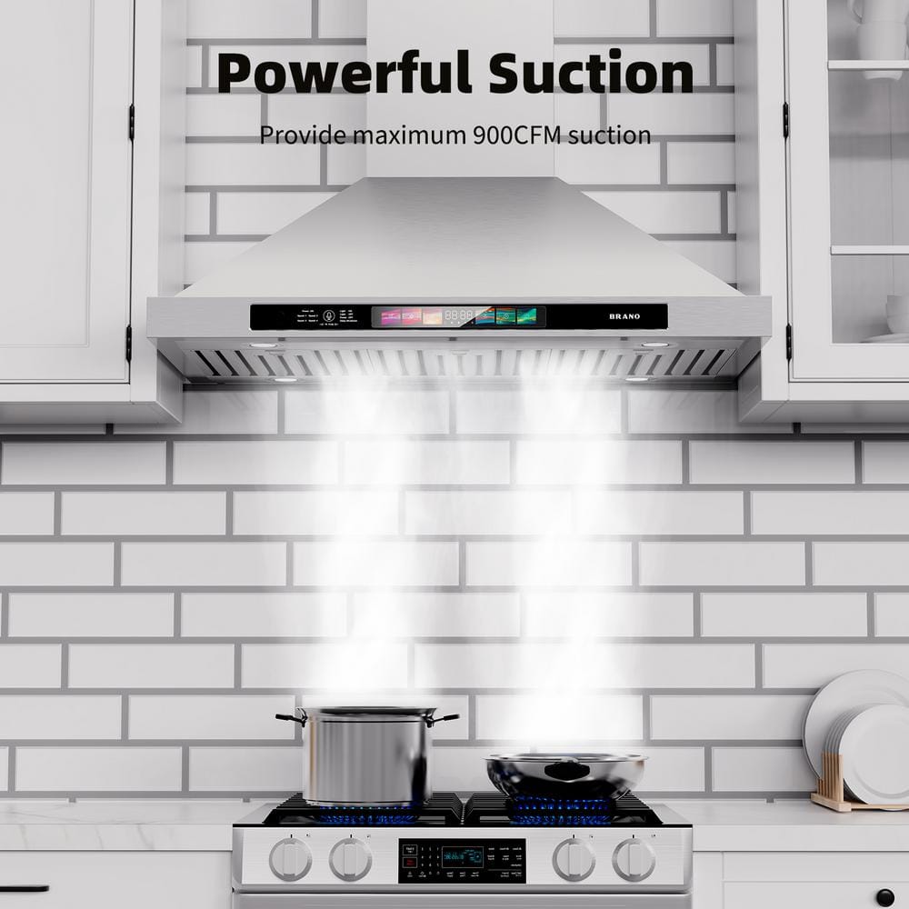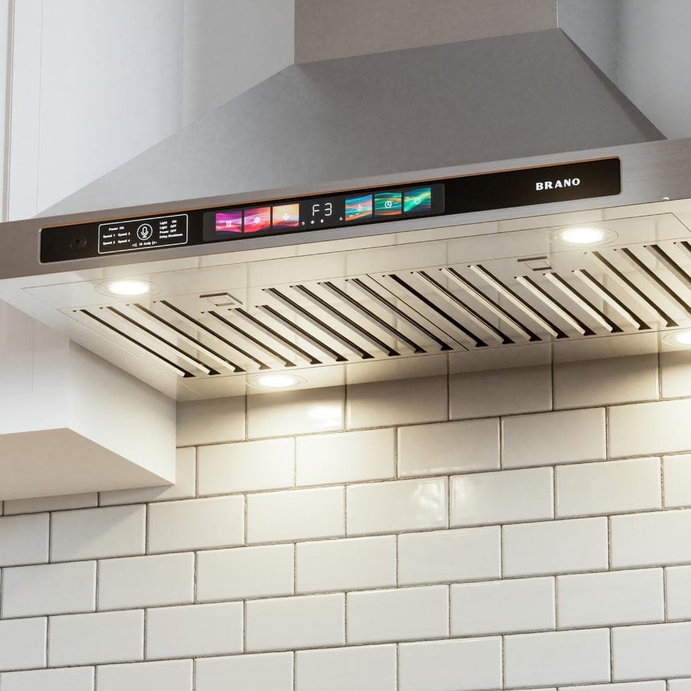 BRANO 30 in 900 CFM Ducted Wall Mount Range Hood in Stainless Steel, Voice/Gesture/Touch Control, Delay Shutdown, 4 Speed Fan