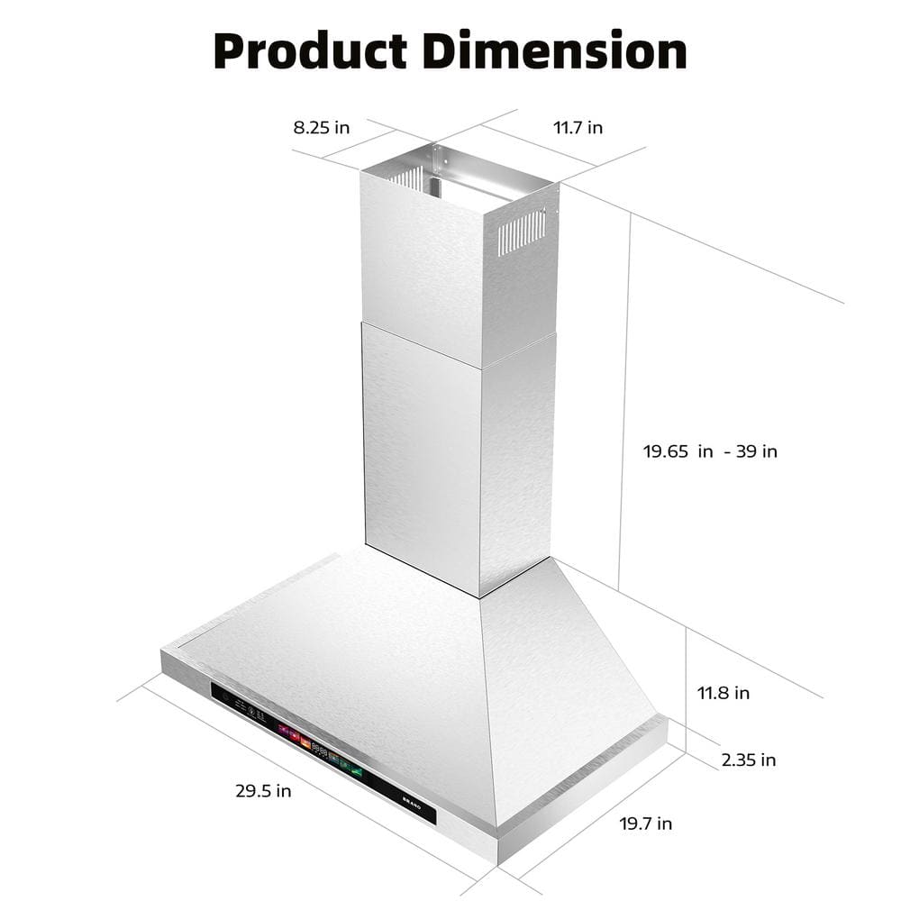 BRANO 30 in. 900 CFM Convertible Wall Mounted Range Hood in Stainless Steel with Carbon Filter and 4 LED Lights