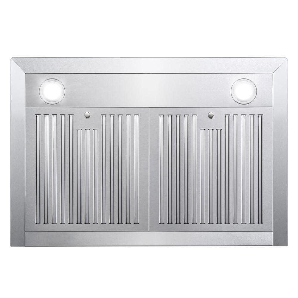 - Ductless 30 in. 380 CFM wall mount range hood quietly clears air