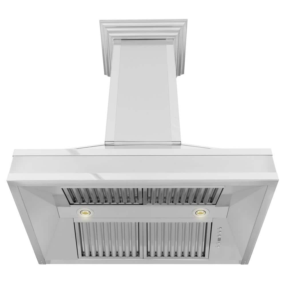 ZLINE Kitchen and Bath 36 in. Designer Series Ducted Wall Mount Range Hood in Satin Stainless Steel with Mirror Accents