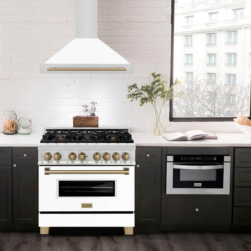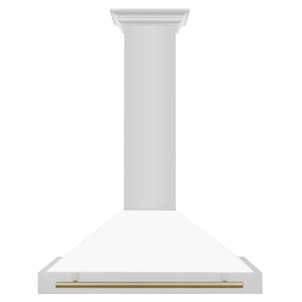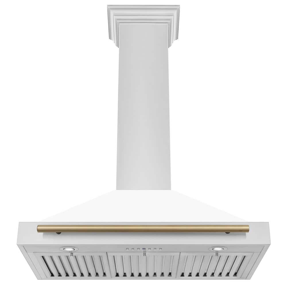 ZLINE Kitchen and Bath Autograph Edition 36 in. 400 CFM Ducted Vent Wall Mount Range Hood in Stainless Steel, White Matte & Champagne Bronze