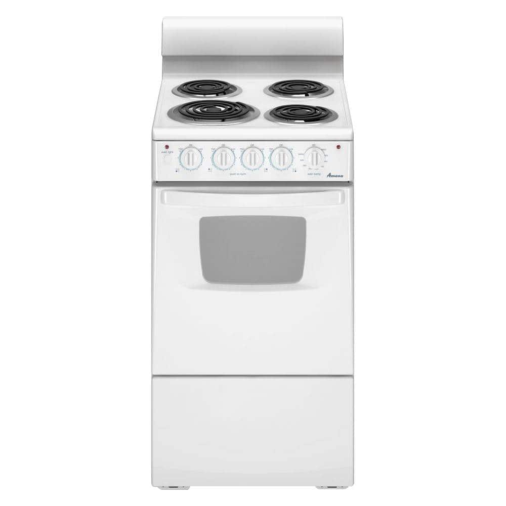 This 20-inch Amana electric range lets you have everything you need to make supper and save space with 2.6 cu. ft. capacity. The versatile cooktop lets you cook all your favorites at once, while the Temp Assure cooking system consistently delivers the ideal temperature to help those comfort foods taste just how you like them.