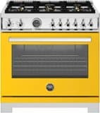 Bertazzoni - 36" Professional Series range - Electric self clean oven - 6 brass burners - Yellow