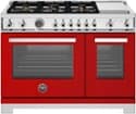 Bertazzoni - 48" Professional Series range - Electric self clean oven - 6 brass burners + griddle - Red