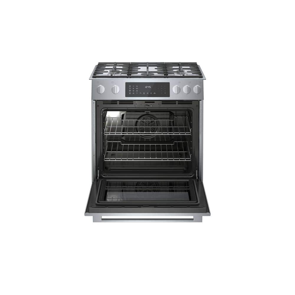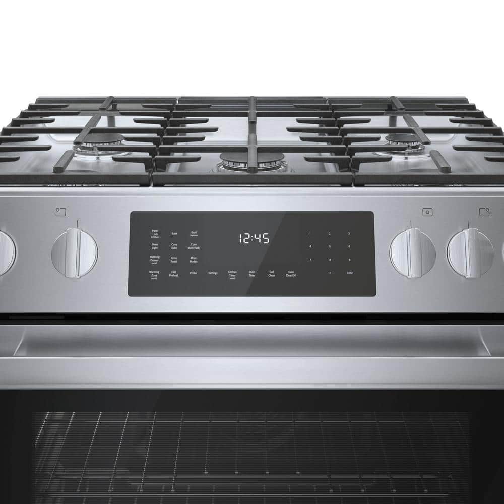 Bosch 800 Series 30 in. 4.6 cu. ft. Slide-In Dual Fuel Range with Self-Cleaning Convection Oven in Stainless Steel