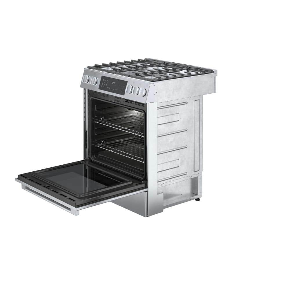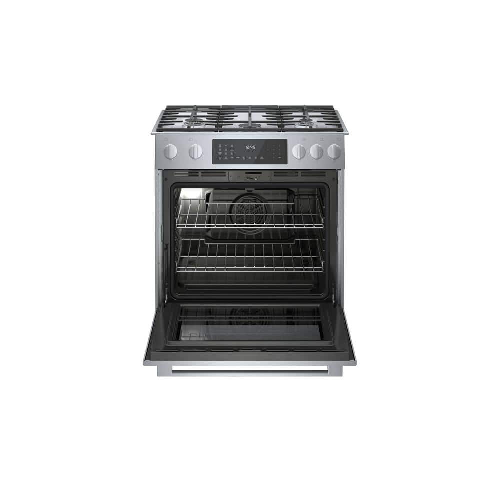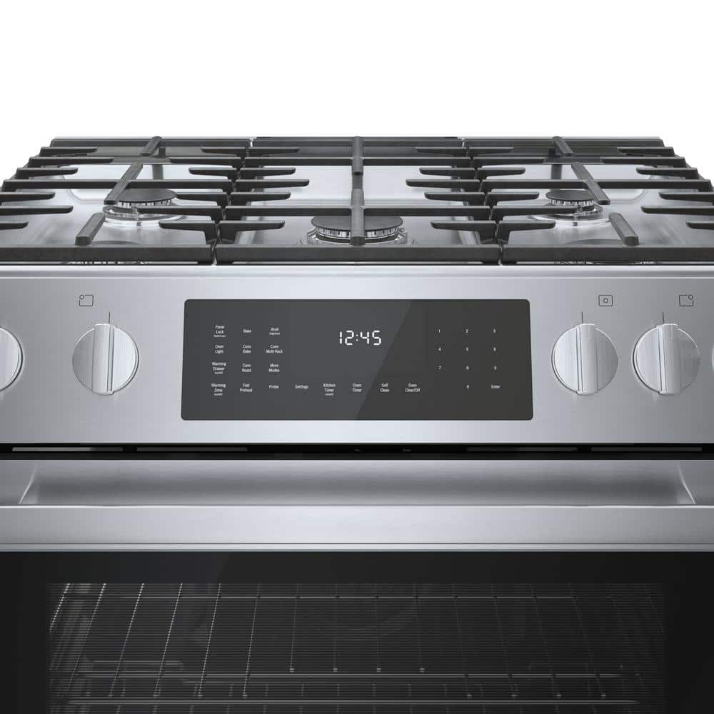 Bosch Benchmark Series 30 in. 4.6 cu. ft. Slide-In Dual Fuel Range with Gas Stove and Electric Oven in Stainless Steel