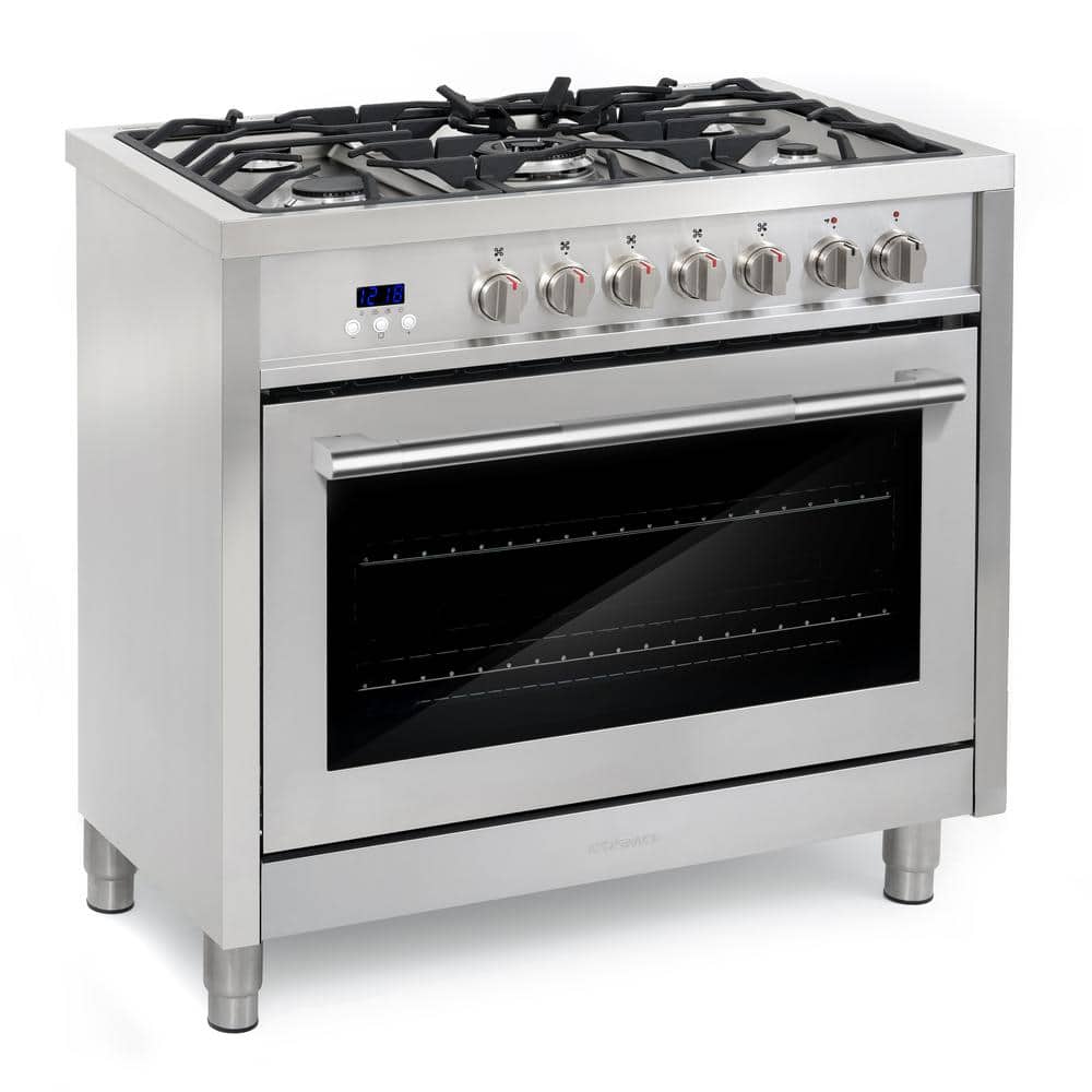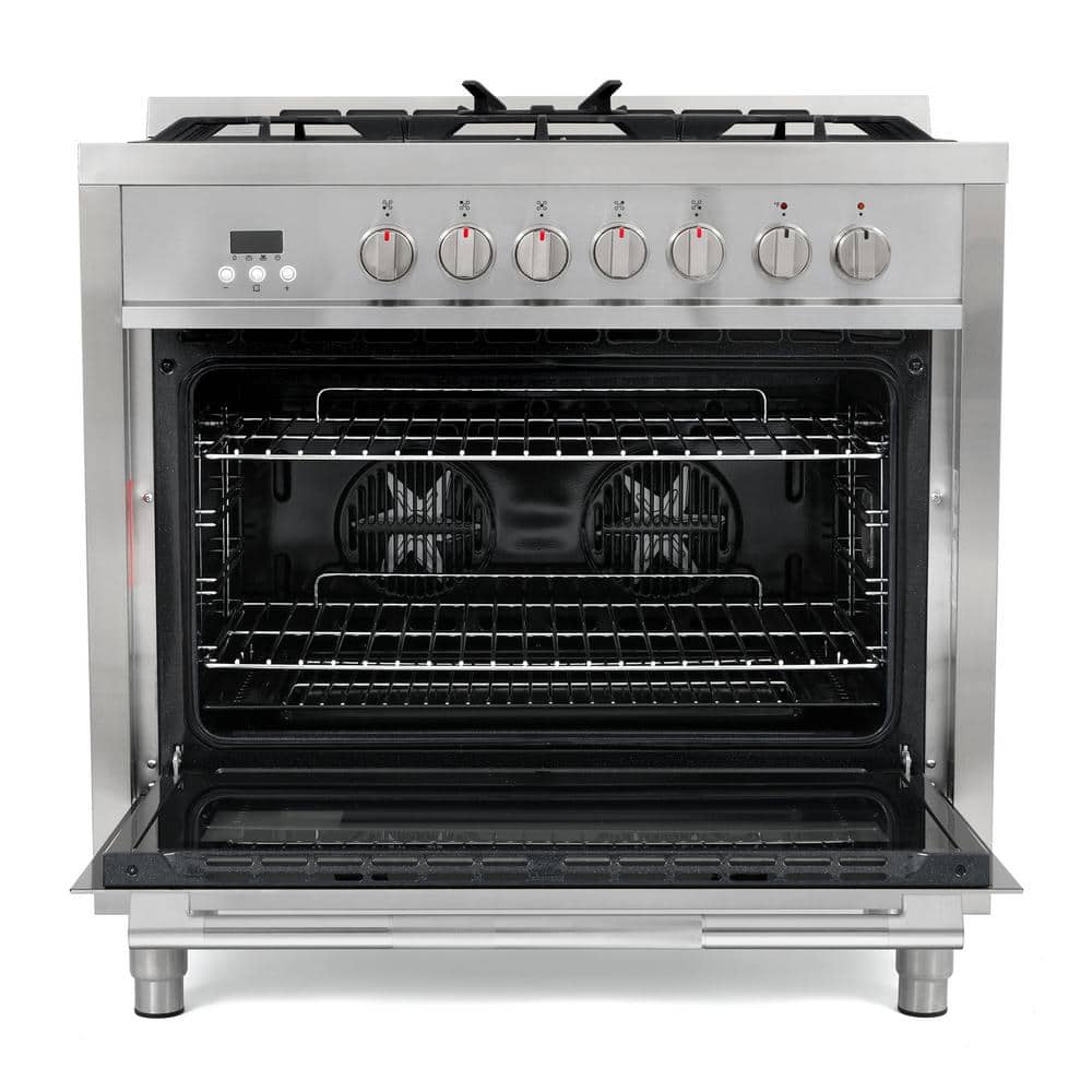 Cosmo 36 in. Stellar Collection 3.8 cu. ft. Dual Fuel Range, 5 Burners, Convection Oven, Textured Grip Handle, Stainless Steel