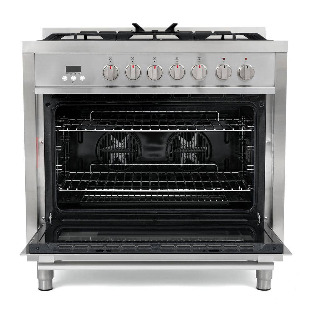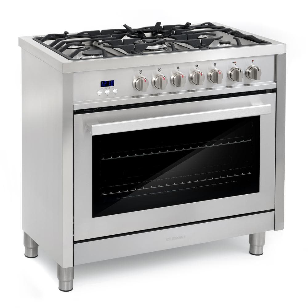 Cosmo 36 in. Stellar Collection 3.8 cu. ft. Dual Fuel Range, 5 Sealed Burners, 8 Function Convection Oven in Stainless Steel