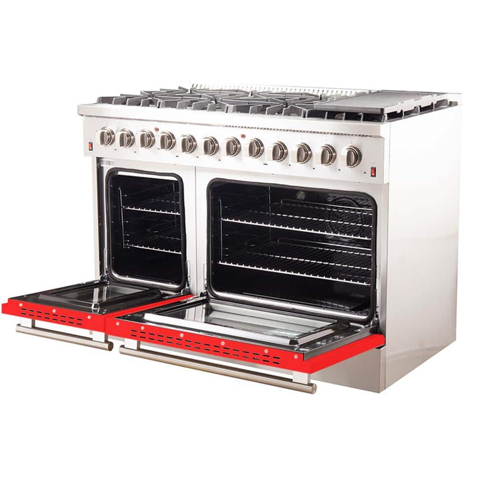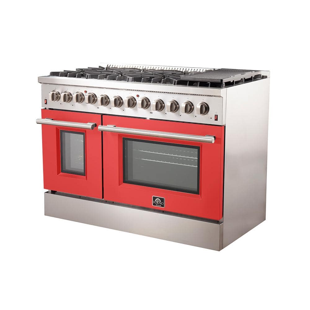 Forno Galiano 48 in. 8-Burner Double Oven Dual Fuel Range with Gas Stove and Electric Oven in Stainless Steel with Red Door