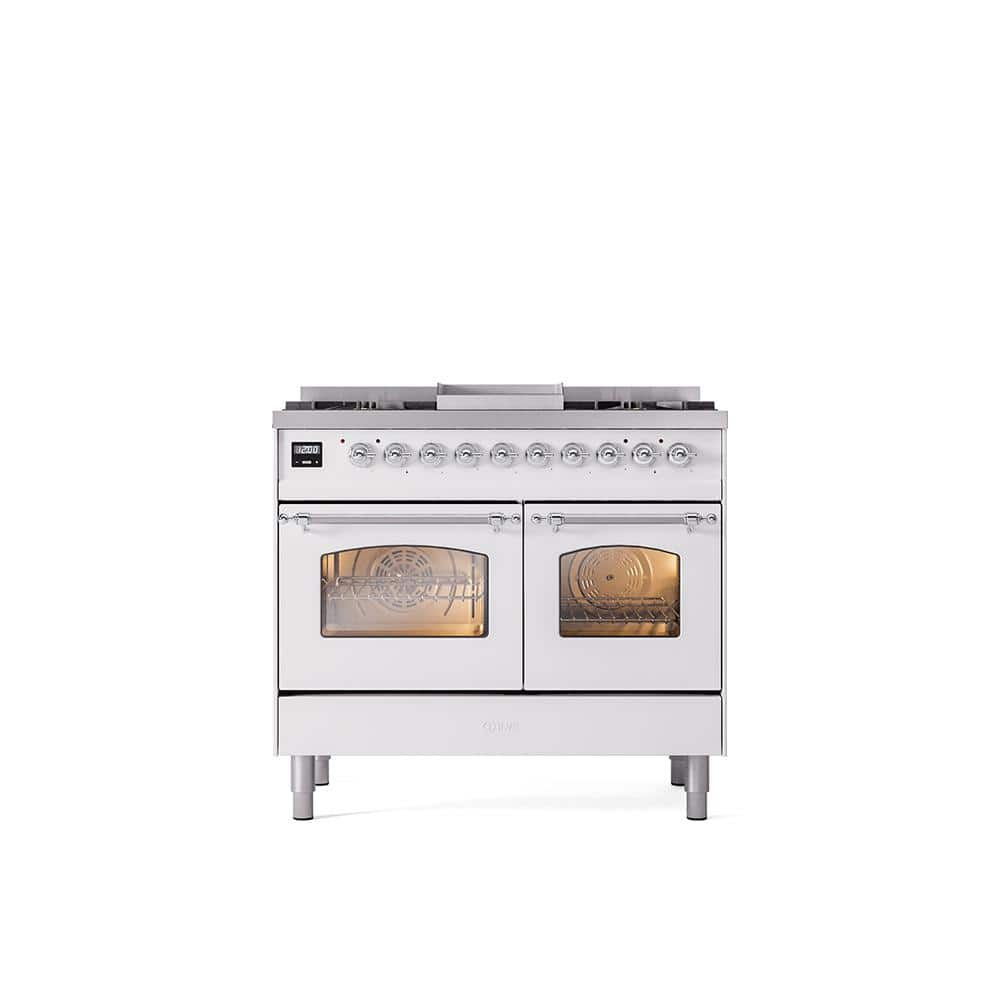 ILVE Nostaglie II 40 in. 6-Burners Freestanding Dual Fuel Range in White Chrome Trim