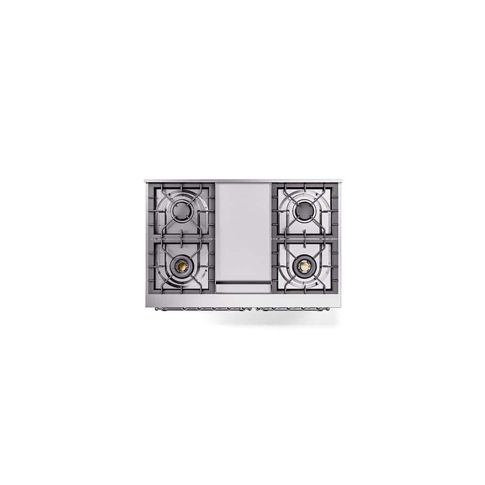 Introducing the new Nostalgie II 40 in. dual fuel range, a classic addition with a touch of innovation to any kitchen. This range feature sealed burners equipped with total black brass flame spreader that has a non-stick nanotechnological coating, heavy cast iron grates, 2.3 plus 2 cu. ft. dual oven capacity and soft closing door system.