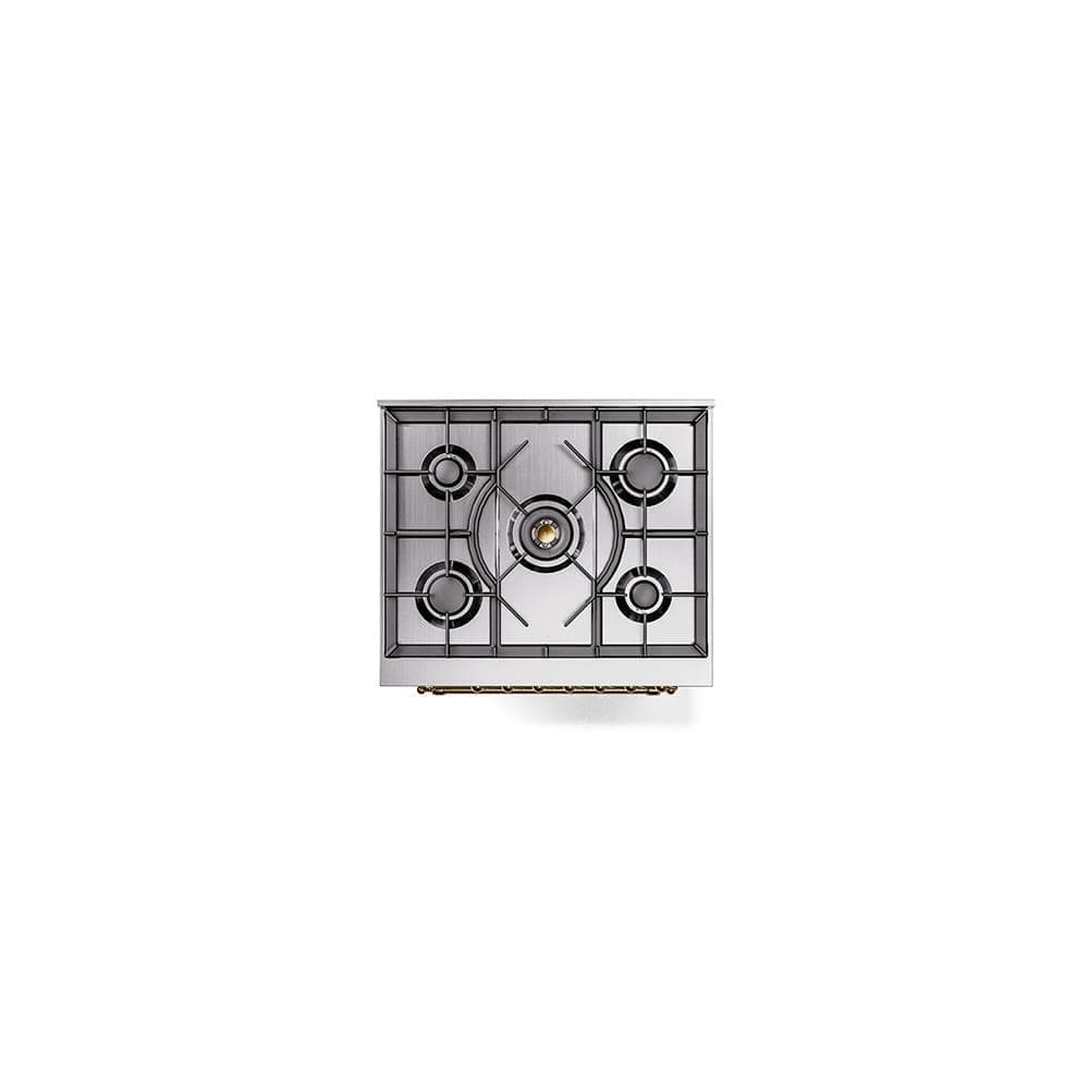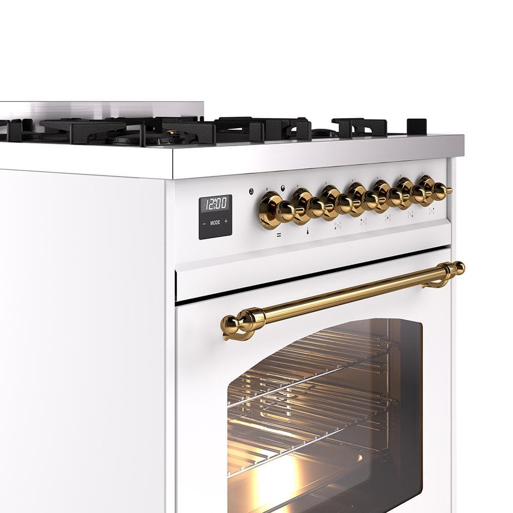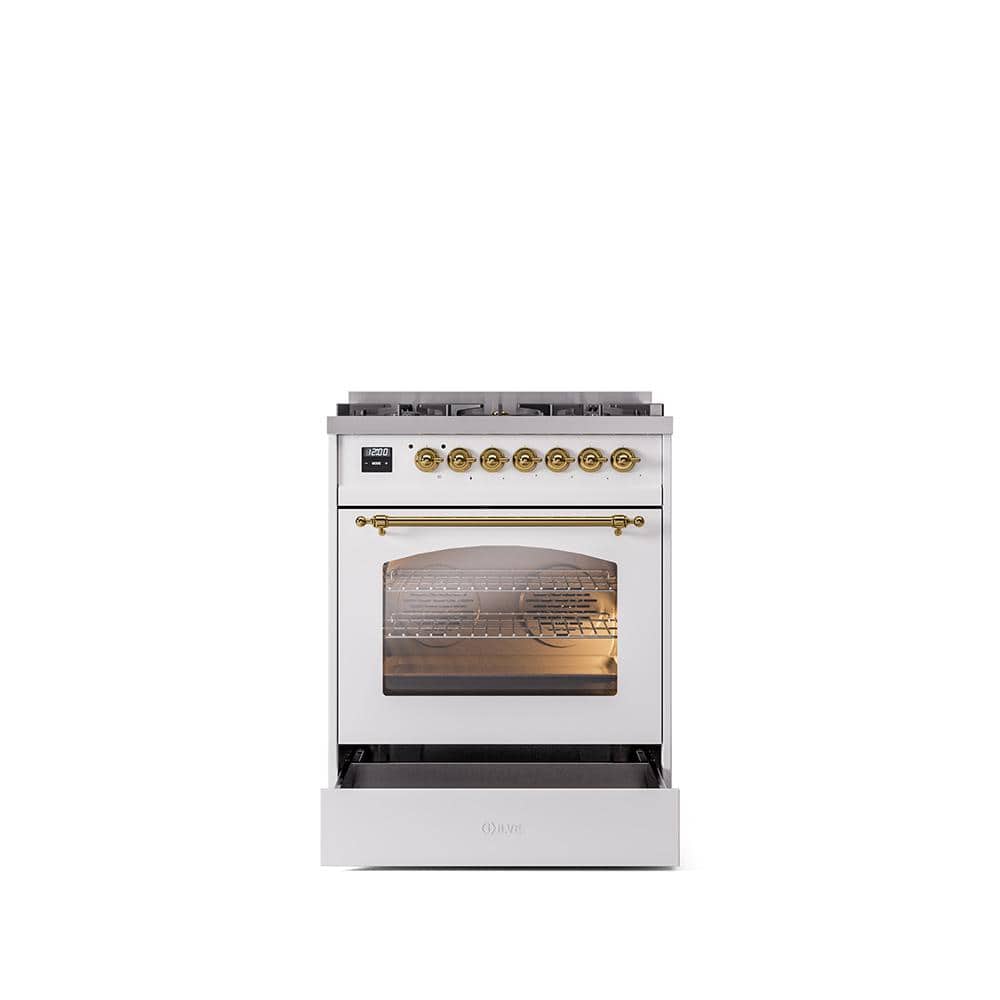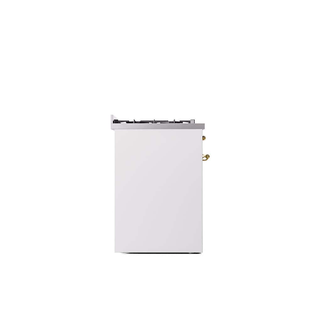 ILVE Nostalgie II 30 in. Dual Fuel Natural Gas Range with 5 Burners, Brass Trim in White