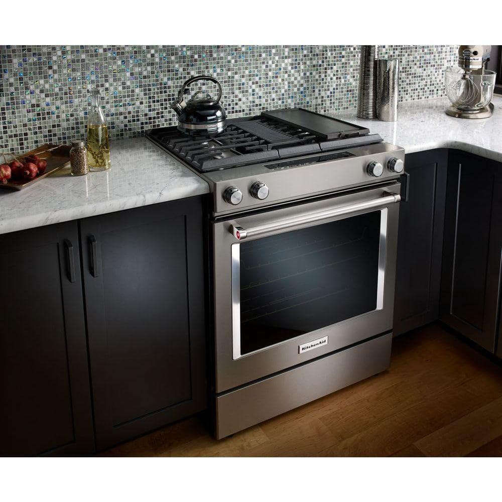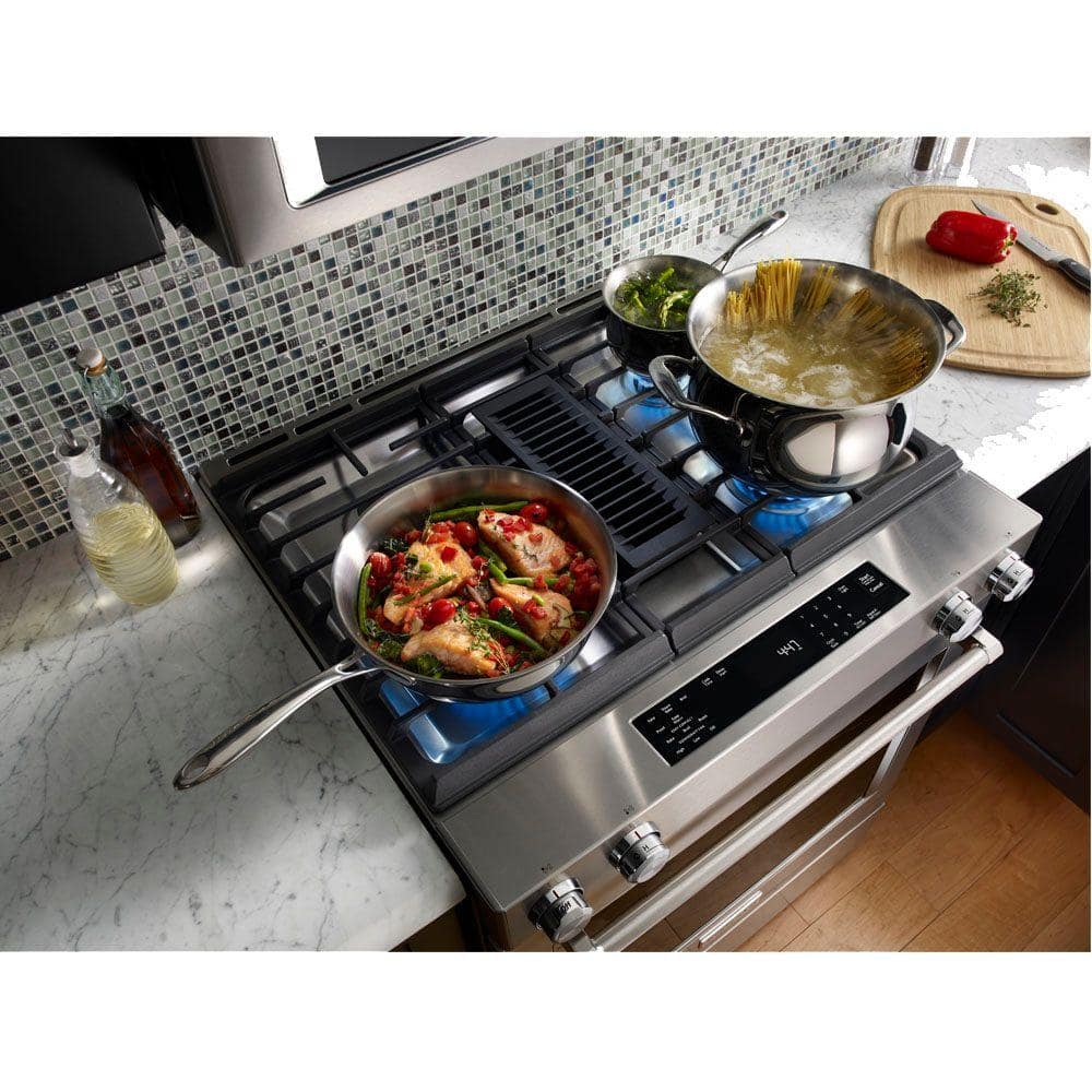 KitchenAid 6.4 cu. ft. Downdraft Slide-In Dual Fuel Range with Self-Cleaning Convection Oven in Stainless Steel
