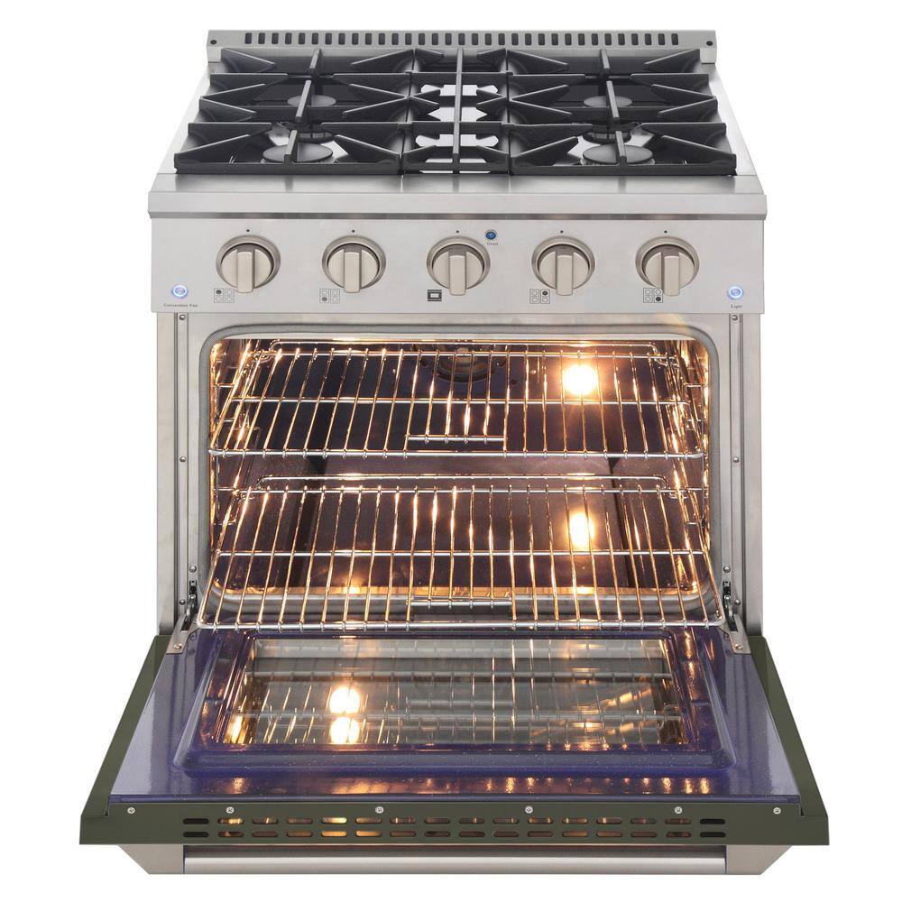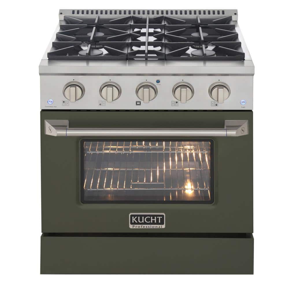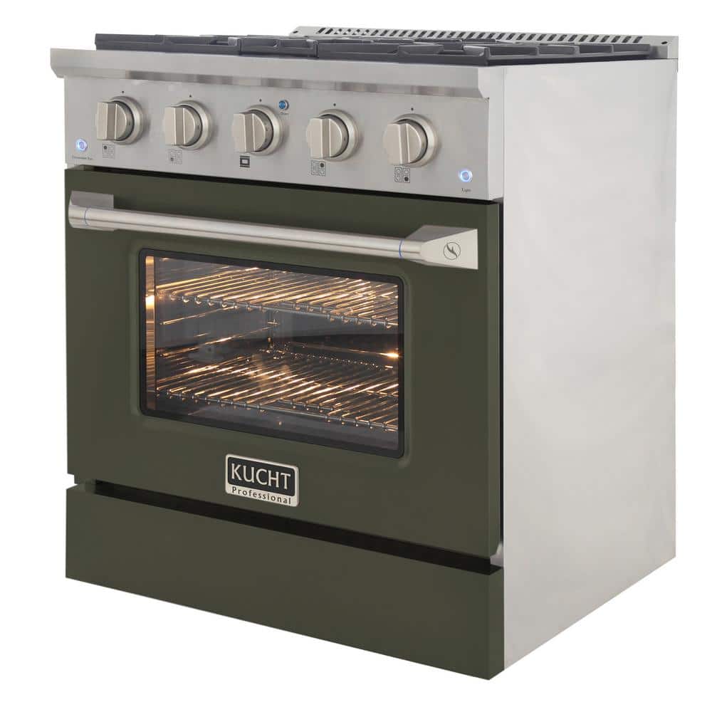 Kucht 30 in. 4.2 cu. ft. 4-Burners Dual Fuel Range Propane Gas in Stainless Steel, Olive Green Oven Door with Convection Oven