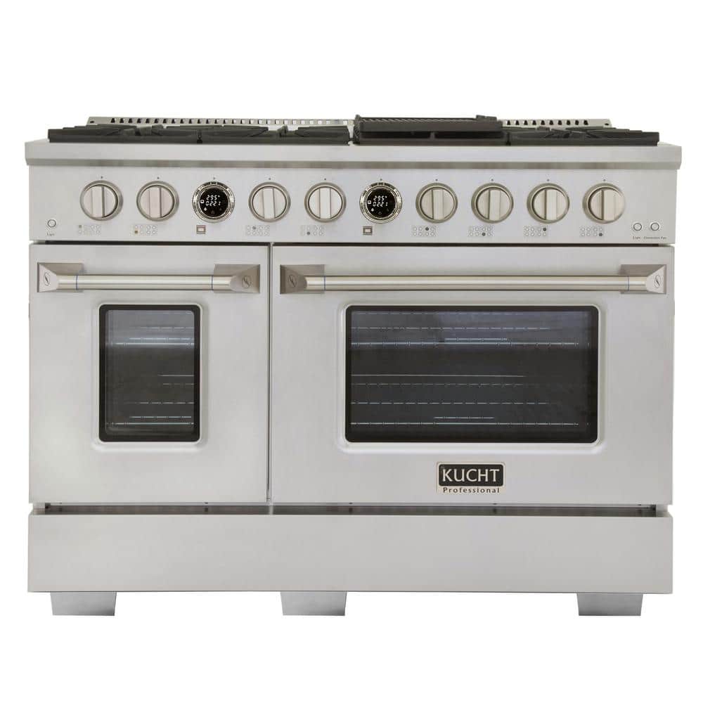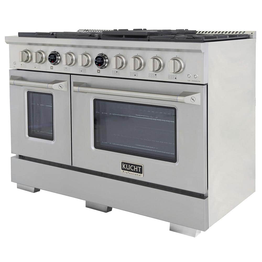 Kucht 48 in. 6.7 cu. ft. 8-Burner Double Oven Dual Fuel Range for Natural Gas in Stainless Steel Plus Under Cabinet Range Hood