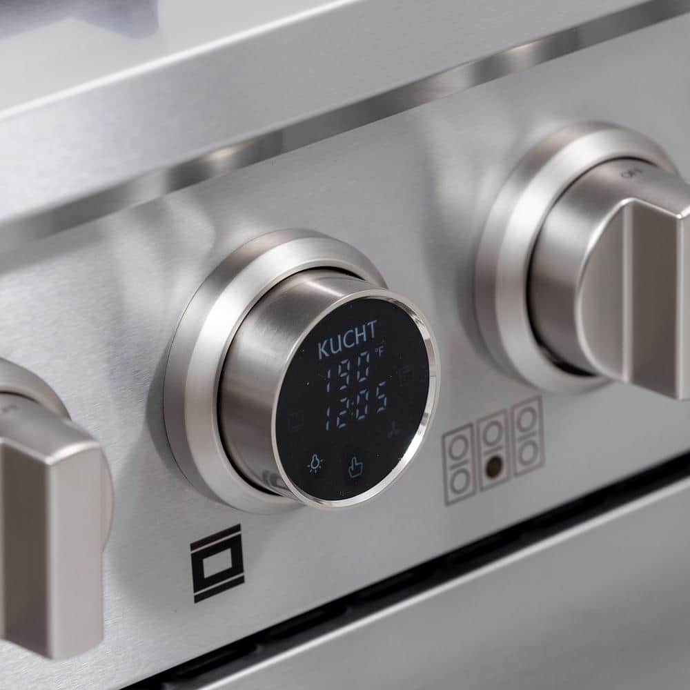 Introducing the Kucht EXPERIENCE SERIES-KXP and KXD, a revolutionary dual-fuel range that redefines industry standards. This stunning range seamlessly blends an industrial aesthetic with luxurious accents, featuring potent gas burners, precise electric oven and durable construction for an all-encompassing culinary experience. Featuring our new Horus Digital Dial Thermostat, the KX series ensures precision and user-friendly operation. Available in 4-sizes: 30 in. 36 in. 48 in. and 60 in. and with a choice of 3-distinctive colors. For the KX Series, we took everyone's dream stove and just made it better. To add the finishing touch, pair your range with the Kucht Pro-Style Range Hood - Featuring the innovative new digital controls. A perfect blend of attainable luxury and professional performance for your kitchen. Available in 30 in. 36 in. 48 in. and 60 in. sizes, this elegant range hood comes in classic stainless steel, designed to complement any kitchen decor. The Kucht Range Hood ensures precise ventilation and seamless operation. It efficiently keeps heat, smoke, and food odors away from your kitchen, all while operating at impressively low noise levels. Enhance your kitchen with the superior style and functionality of Kucht.