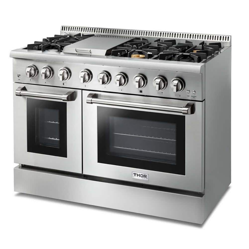 Thor Kitchen Pre-Converted Propane 48 in. 6.7 cu. ft. Double Oven Dual Fuel Range in Stainless Steel