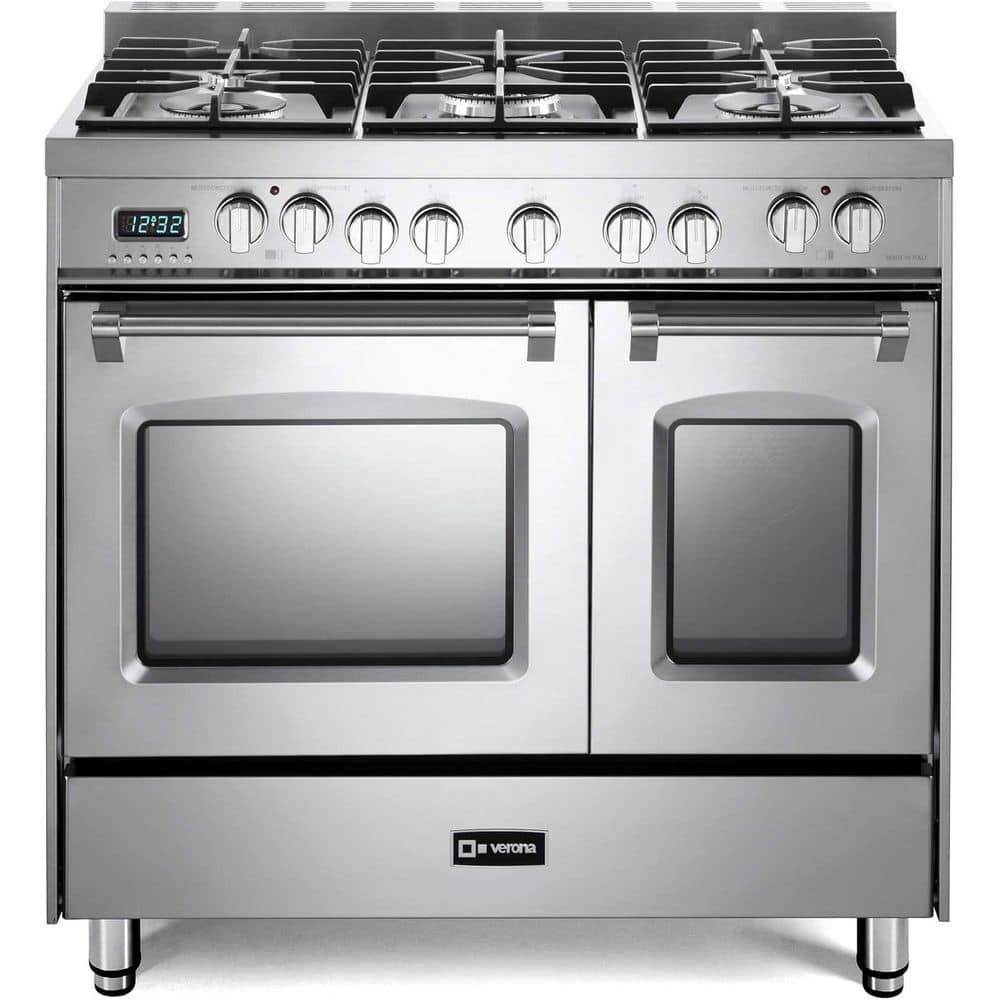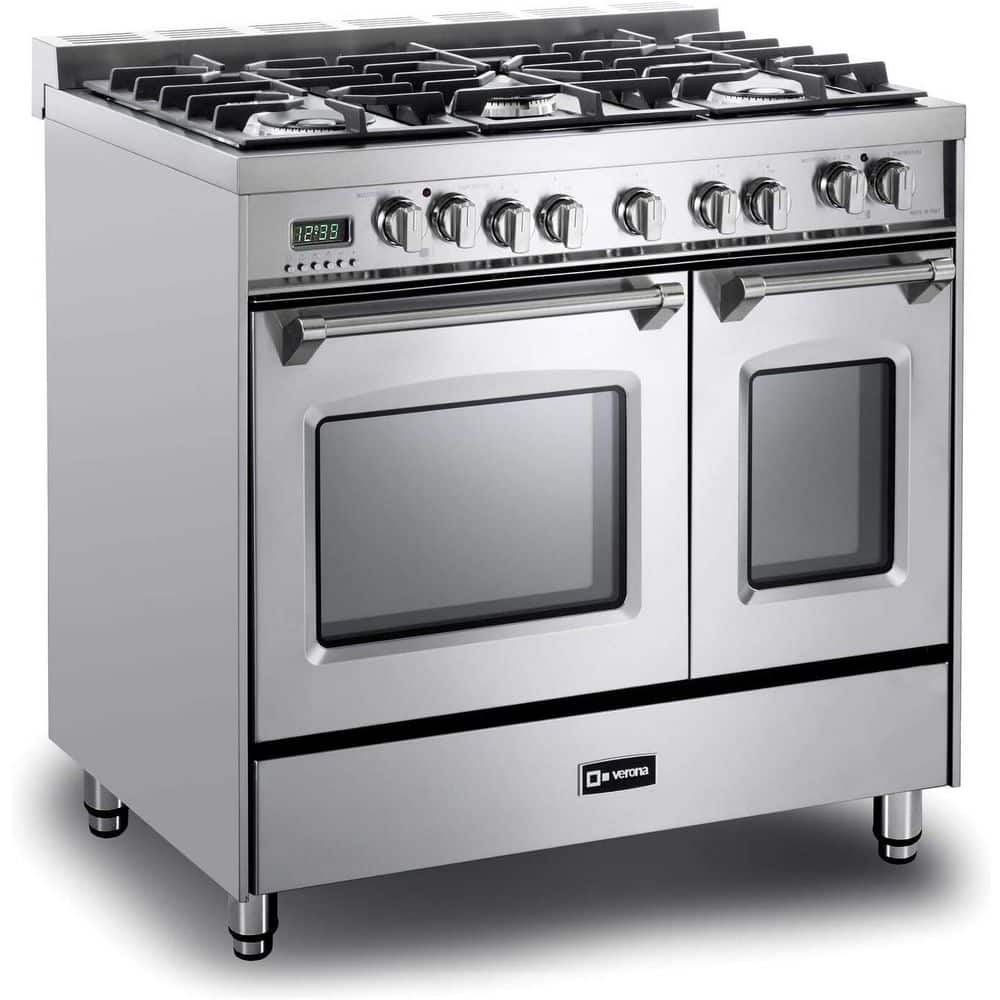 Verona Prestige Series 36 in. Freestanding Double Oven Dual Fuel Range in Stainless Steel