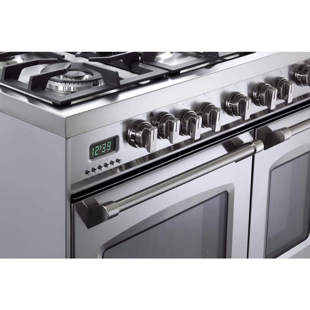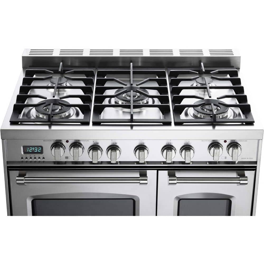 - Dual fuel range with 5 burners and 7 cooking modes
