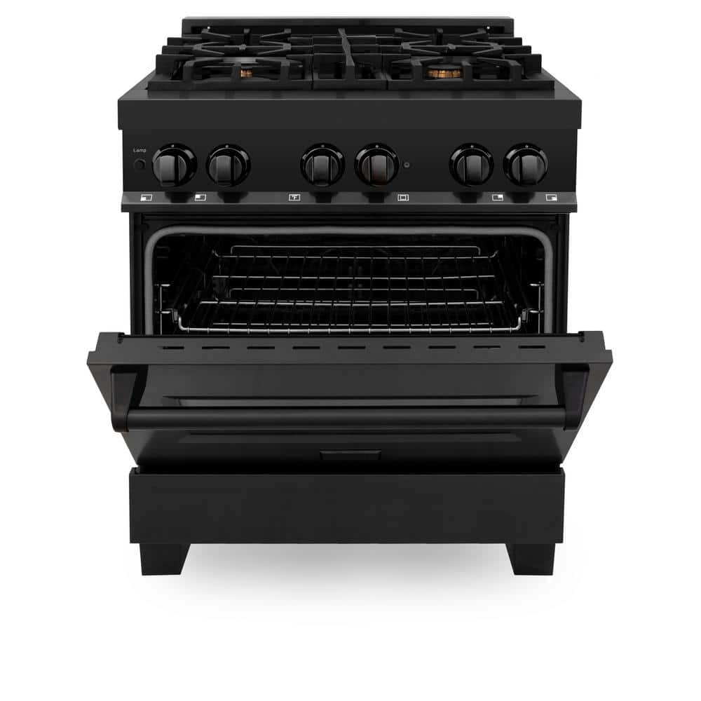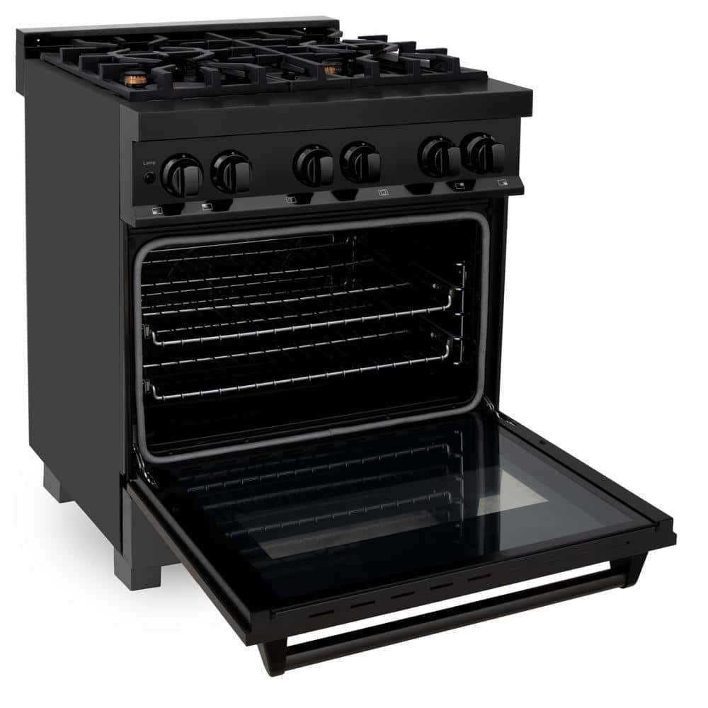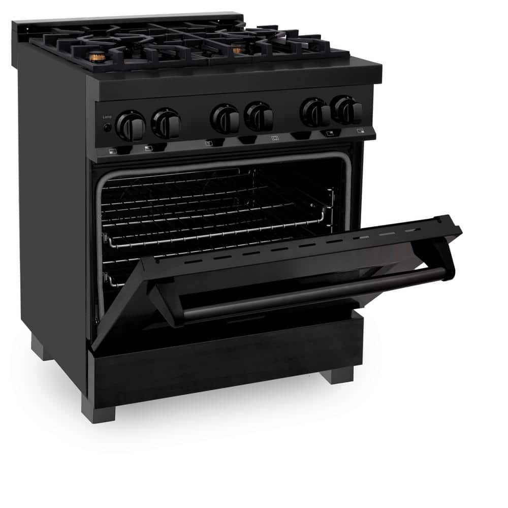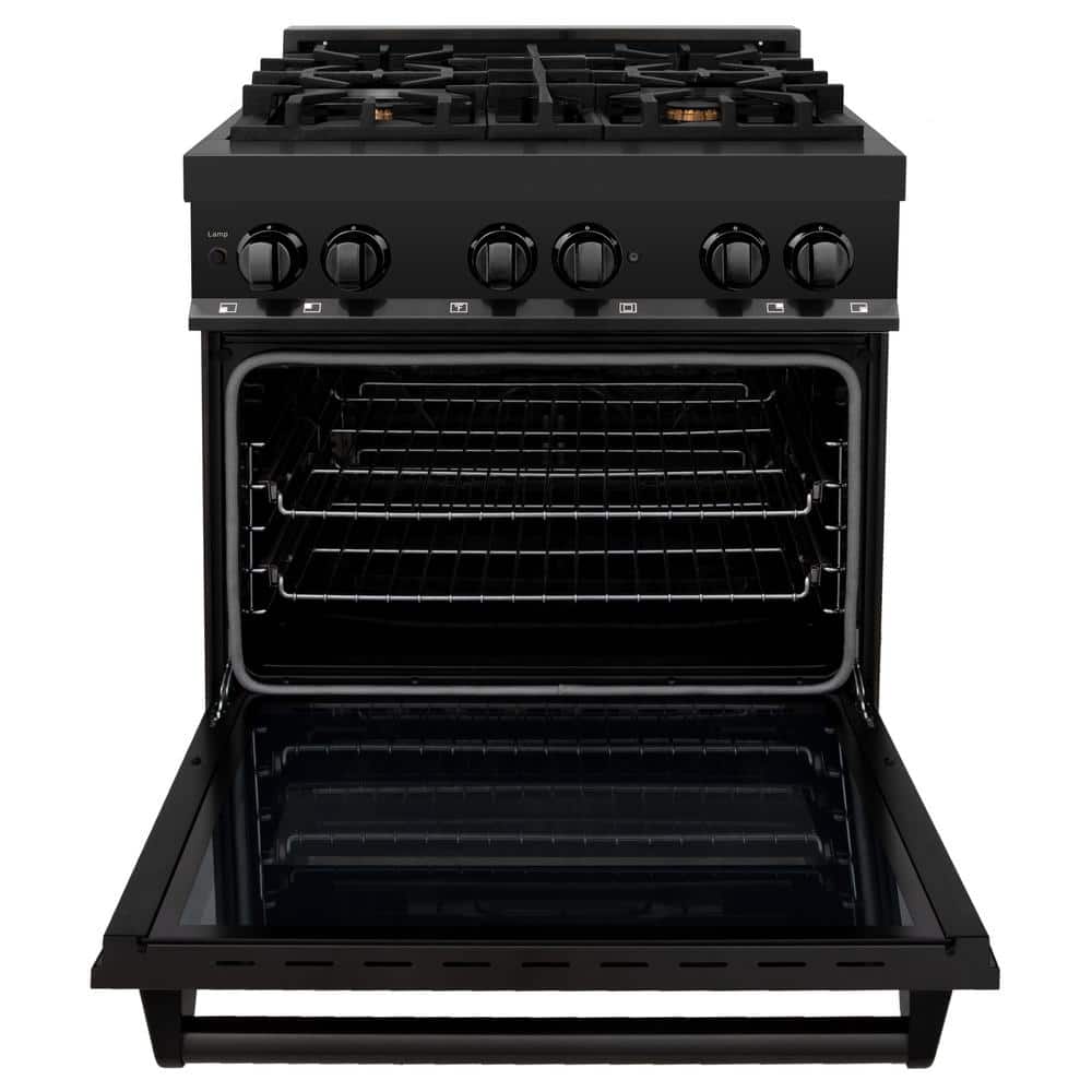 ZLINE Kitchen and Bath 30 in. 4 Burner Dual Fuel Range with Brass Burners in Black Stainless Steel