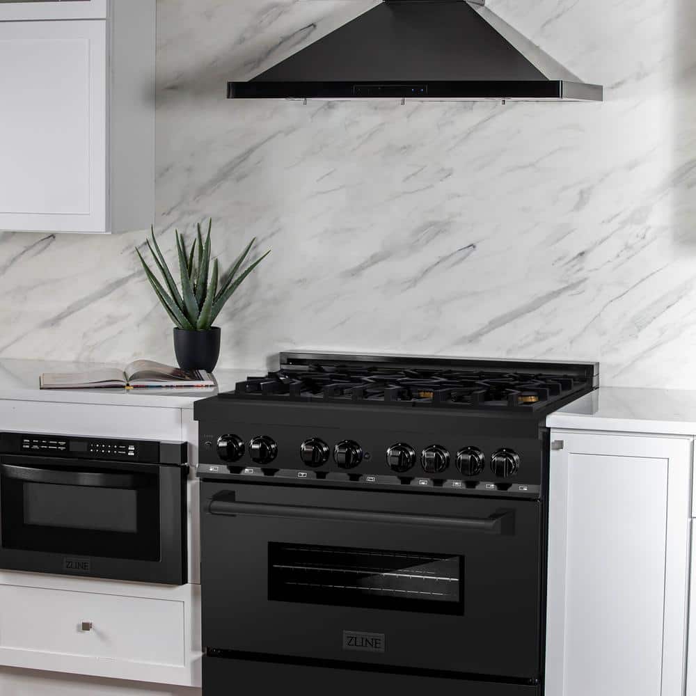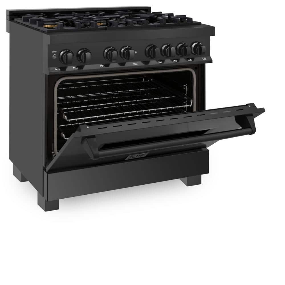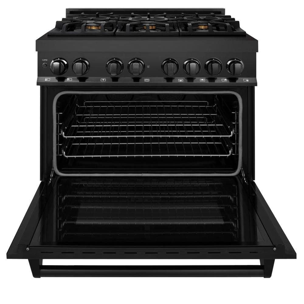 ZLINE Kitchen and Bath 36 in. 6-Burner Dual Fuel Range with Brass Burners in Black Stainless Steel