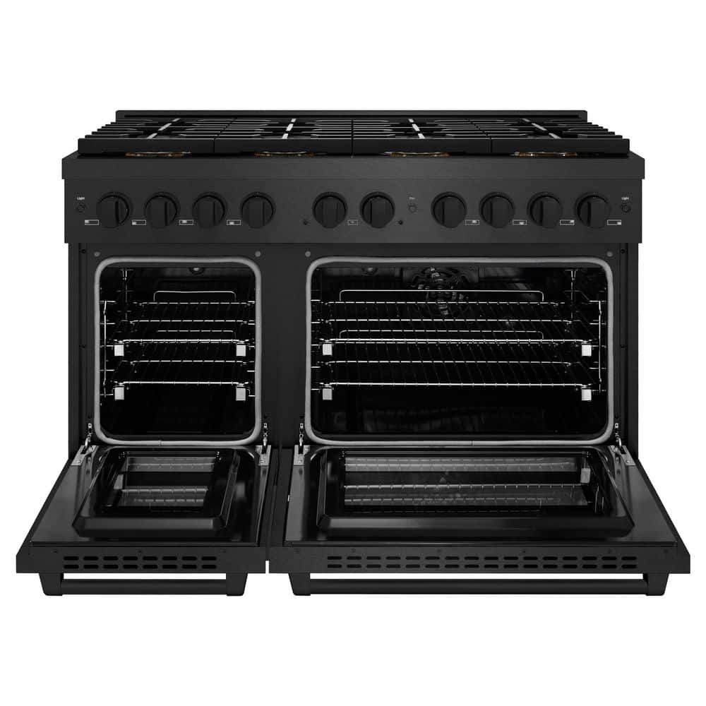 ZLINE Kitchen and Bath 48 in. 6.7 cu. ft. Paramount Dual Fuel Range with 8 Burner DuoPro Cooktop and Dual Ovens in Black Satin Stainless Steel