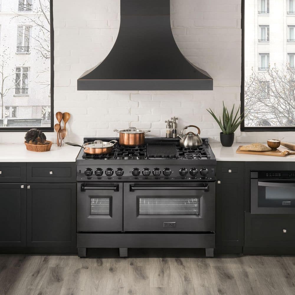 Luxury isn't meant to be desired - it's meant to be attainable. The ZLINE 48 in. 6.0 cu. ft. Legacy Dual Fuel Range with Gas Cooktop and 2 Electric Ovens in Black Stainless Steel with 6 Brass Burners (RAB-BR-48) pairs a powerful gas cooktop with 6 Italian-crafted brass burners with a large electric convection oven, and a small bake and broil oven with Landscape oven door window designs. With innovative features designed to enhance your kitchen's capability, ZLINE Legacy Dual Fuel Ranges provide a professional culinary experience by pairing unmatched performance with timeless style.