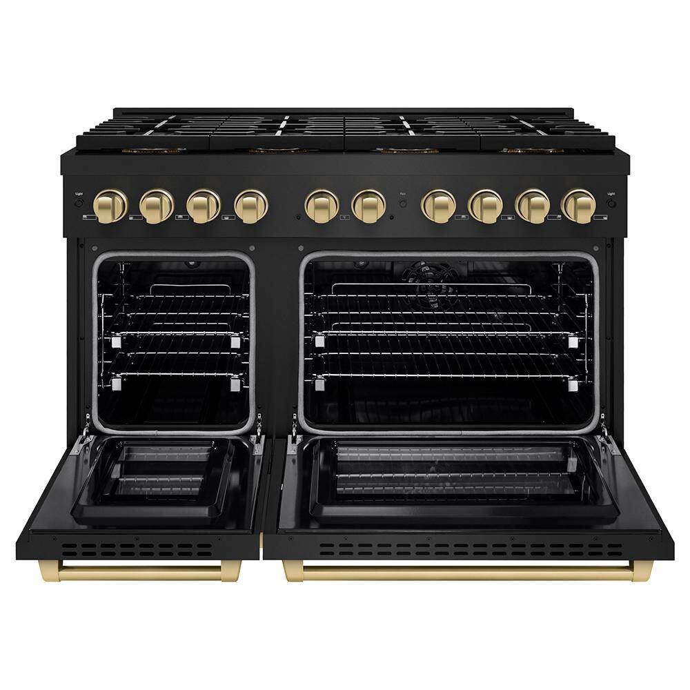 Luxury isn't meant to be left desired-it's meant to be attainable. The ZLINE Autograph Edition 48 in. 6.7 cu. ft. Paramount Dual Fuel Range with 8 Burner DuoPro Cooktop and Dual Ovens in Black Stainless Steel and Champagne Bronze Accents (PSDRBZ-48-CB) features a high-powered gas cooktop with 8 hand-crafted Italian dual-ring brass burners and a versatile electric convection oven allowing you to master every meal. With ZLINE DuoPro, every burner brings the performance you need-wherever you need it.