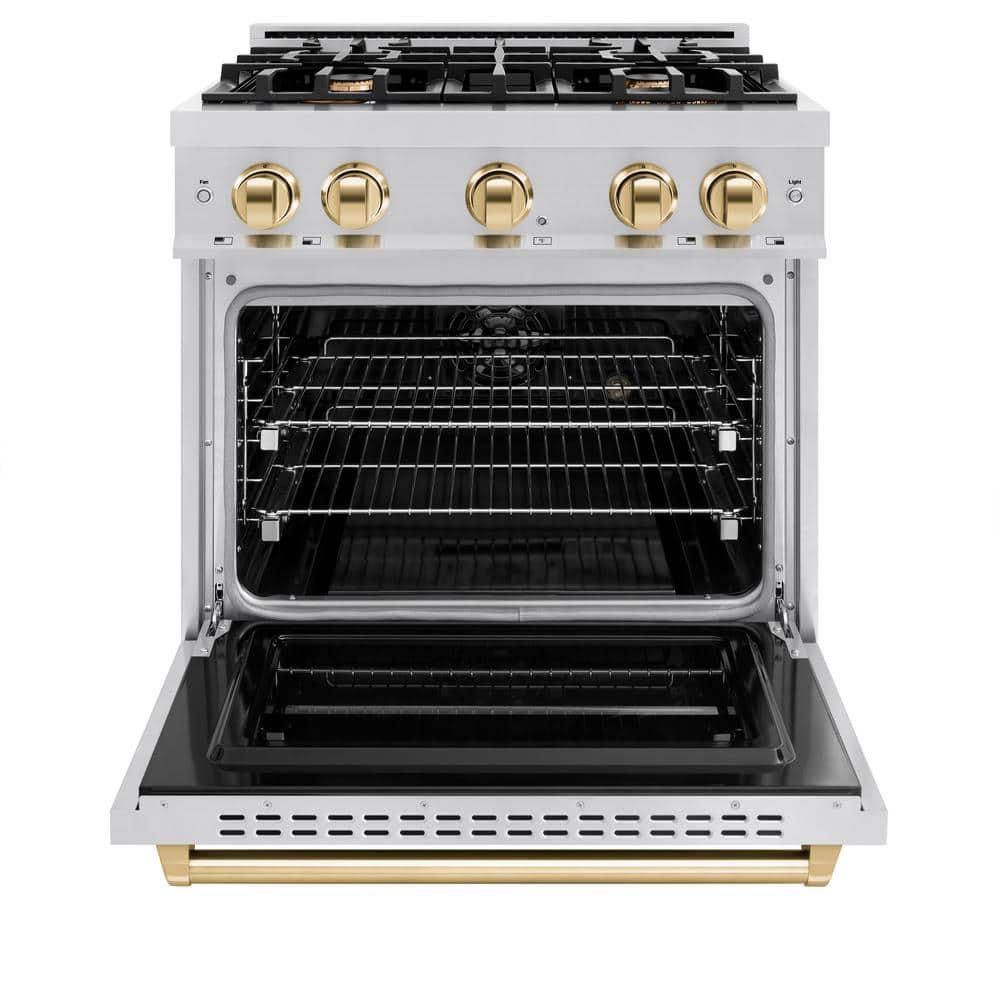 ZLINE Kitchen and Bath Classic 30 in. 4-Burner Dual Fuel Range with Convection Oven in Stainless Steel and Polished Gold