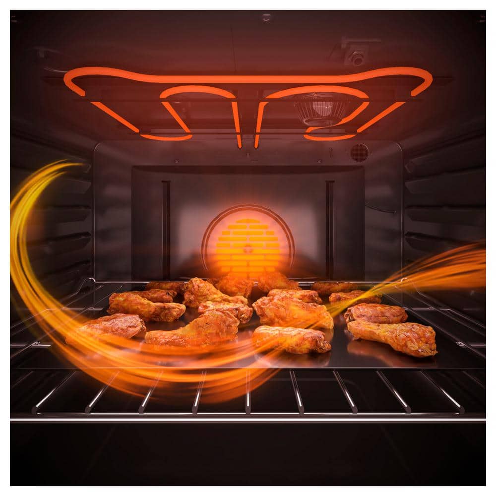 - Convection oven includes a rear fan for faster, more even baking