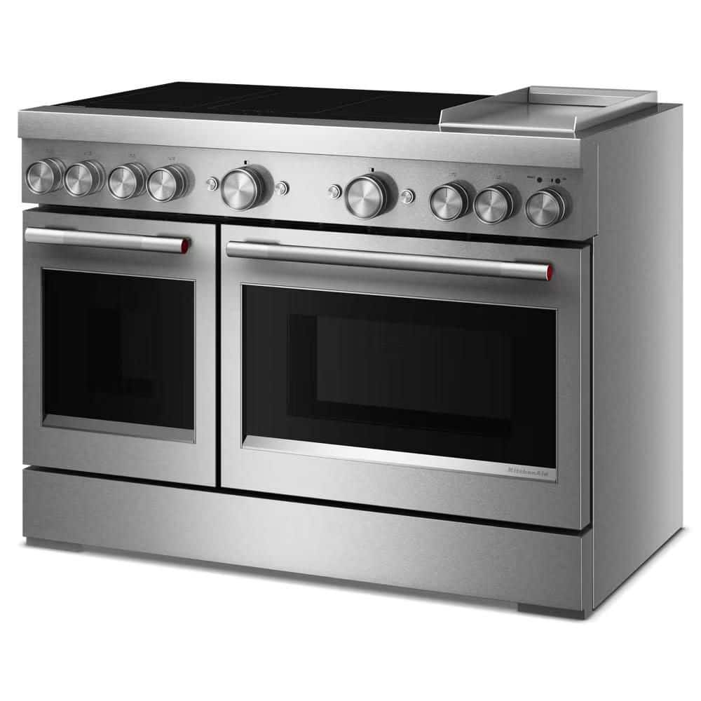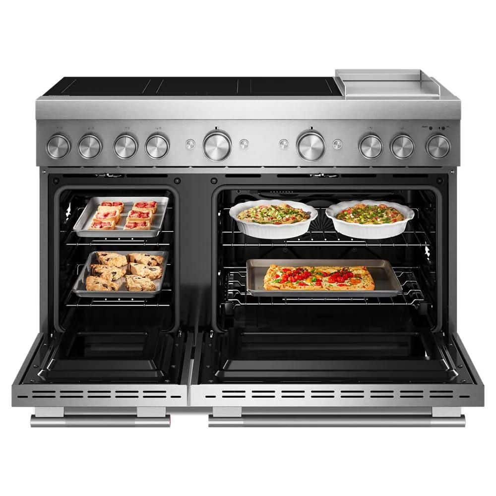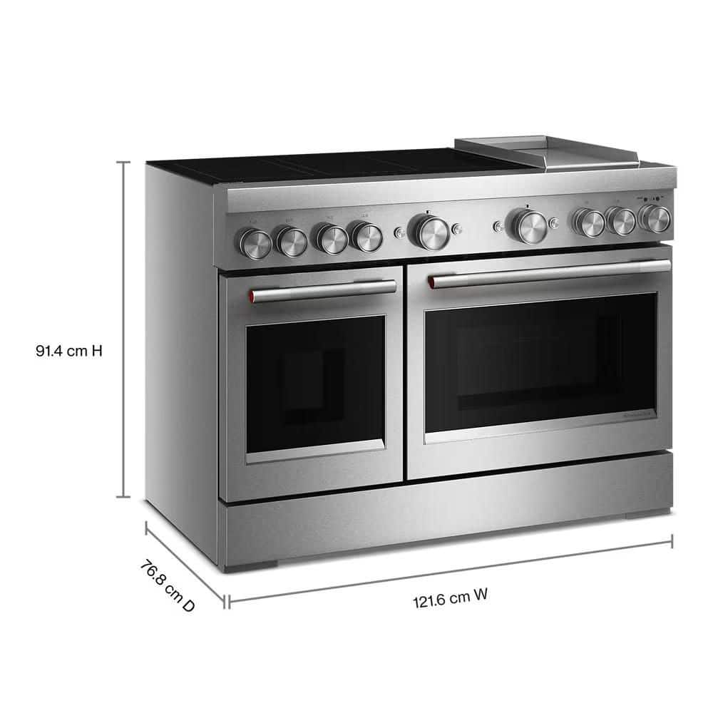 KitchenAid 48 in. 6 Burner Elements Freestanding Double Oven Induction Range in Stainless Steel with Griddle