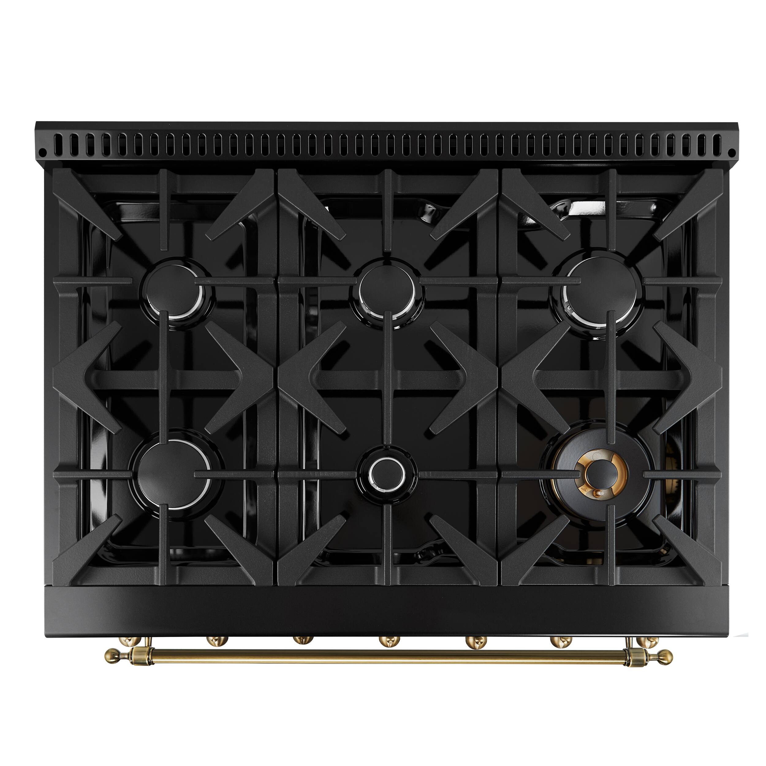 Forno Appliances - Antico 4.5 Cu. Ft. Freestanding Dual Fuel Convection Range with Antique Brass Accents - Black