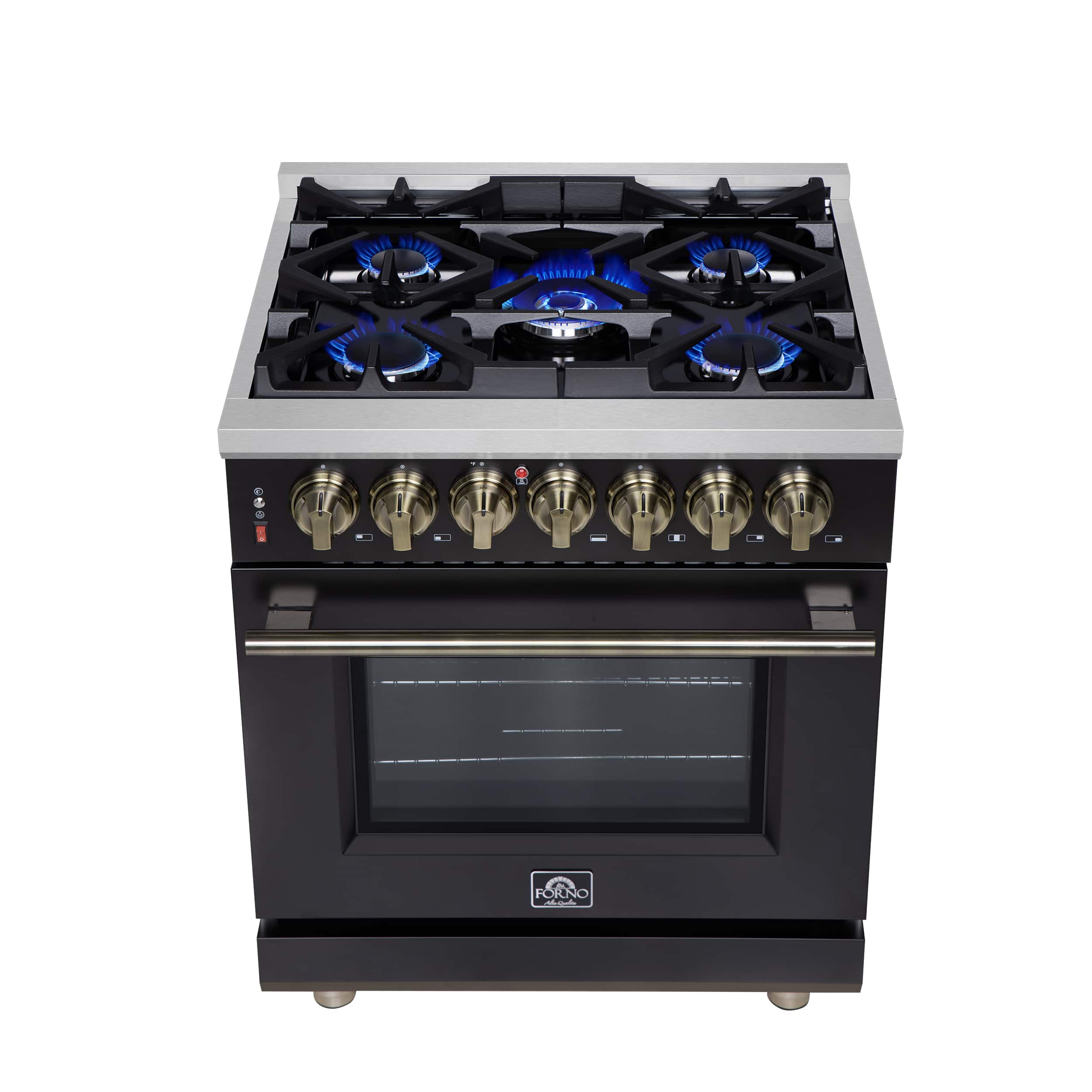Forno Appliances - Massimo 4.32 Cu. Ft. Freestanding Dual Fuel True Convection Range with Air Fryer Basket - Black