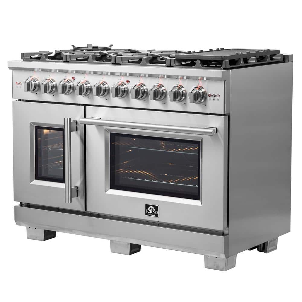 Forno Capriasca 48 in. Freestanding French Door Double Oven Gas Range 8 Burner Stainless Steel