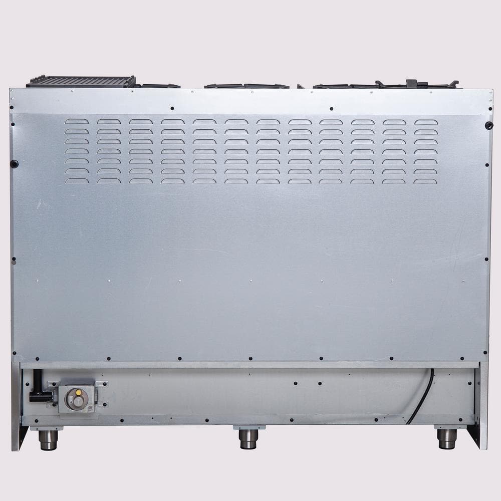 The 48 in. Forno Galiano French Door Gas Range brings professional styling and quality into your home kitchen with its durable stainless-steel design. Unique french doors take up to to 12 in. of less open door space and easily open simultaneously with one hand. Cooktop has 8 sealed dual brass burners with a total stove top output of 107,000 BTU. This unit is ready to handle all your pots and pans with ease over its continuous heavy-duty cast-iron grate design. The 6.58 cu. ft. combined oven capacity boasts a total output of 44,000 BTU, providing plenty of power for baking, roasting, and broiling. Impressive black enameled interiors allowing for easy cleaning and 3-layer glass oven door windows provide both heat retention and unobstructed view. Right-side oven has a true convection fan function. Included are 4 chrome plated oven racks, reversible griddle, concave Wok Ring and LP conversion kit. Housed in a high-grade 430 stainless steel body and zinc knobs, this unit sports a stylish look that is built to last. All Forno products are backed by an iron clad 2-year warranty for your satisfaction. Skip the high price tags without sacrificing quality and performance. Lower the cost of living with Forno.