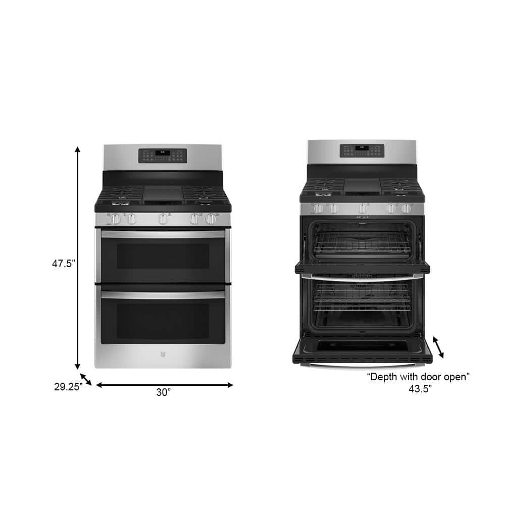 GE 30 in. 6.8 cu. ft. Freestanding Double Oven Gas Range in Stainless Steel with Convection and Air Fry