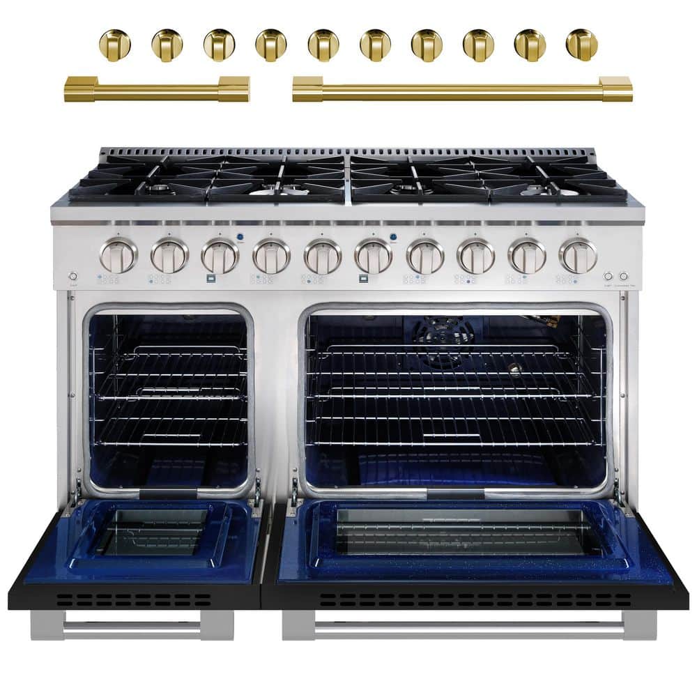 JANSKA Professional Series 48 in., 8-Burners, Freestanding, 6.7 cu. ft. Double Oven Gas Range with Griddle in Matte Black
