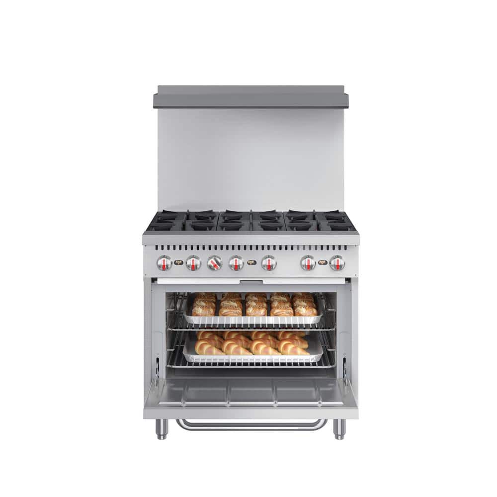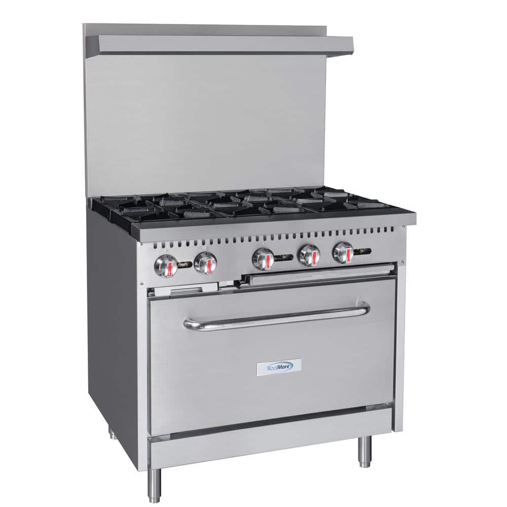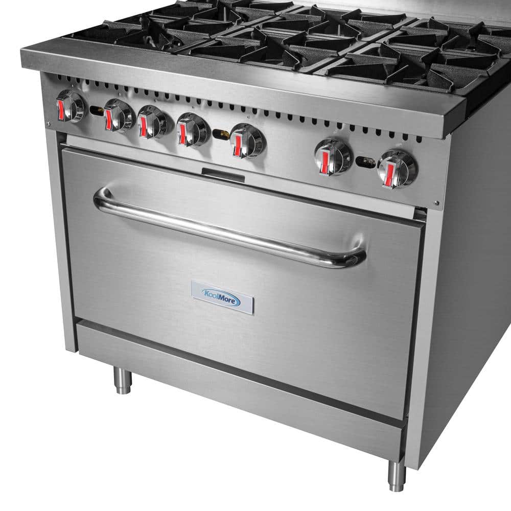 Crafting Unforgettable Meals Begins with a Natural Gas Range that Can Do It All!When it comes to commercial kitchen success it often comes down to the tools and appliances you're working with; especially when it comes to your range. That's why we created the KoolMore Natural Gas Range and fitted it with all the extras needed to prep meals and recipes with exceptional precision. From our oven to our six open-top burners it features all the amenities you'll need to do it with clean precision and exceptional style.Large Shelf and Backsplash, This 36-inch also boasts a wide/tall backsplash to help keep your space cleaner and a shelf built-in above, so you can keep extra pots, pans, and supplies within easy reach.Support your busy kitchen, while super easy to manage with a single chef the larger size of our all-in-one unit means multiple cooks can support each other when they're making different meals or working to stay on top of different aspects of an entire recipe.Optional Caster Wheels, We now offer a compatible set of rolling caster wheels (KM-CR-CASTERS) for our unit to make it easier to slide away from the wall or move when it's time for deep cleaning, so you don't have to lift it.