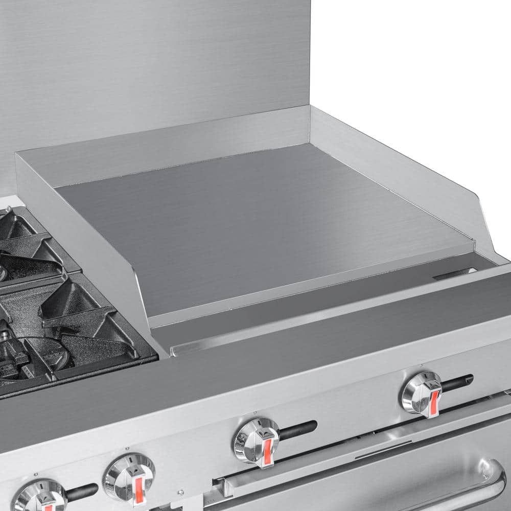 Crafting Unforgettable Meals Begins with a Range that Can Do It All!When it comes to commercial kitchen success it often comes down to tools and appliances you're working with; especially when it comes to your range.That's why we created the KoolMore Liquid Propane Range and fitted it with all the extras you'll need to prep meals and recipes with exceptional precision.From our dual ovens to our griddle/broiler to our open-top burners it features all the amenities you'll need to do it clean precision and exceptional style.