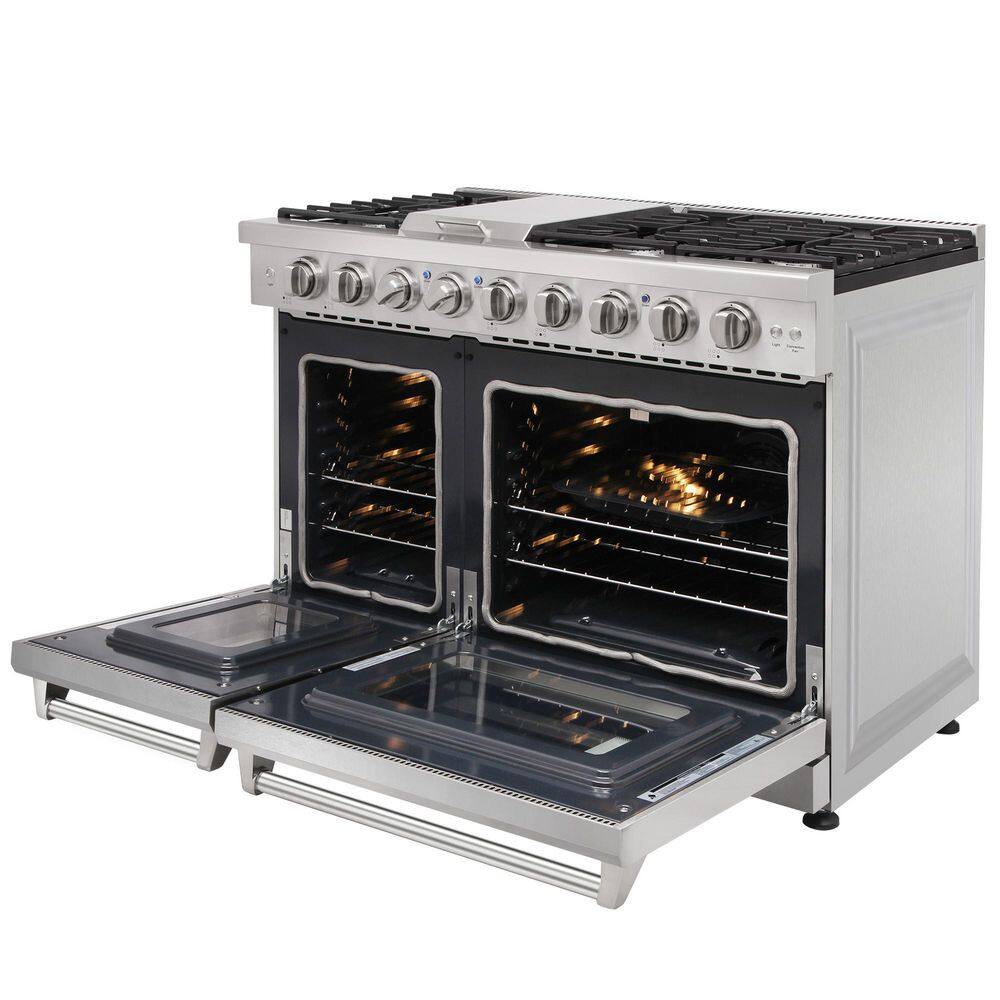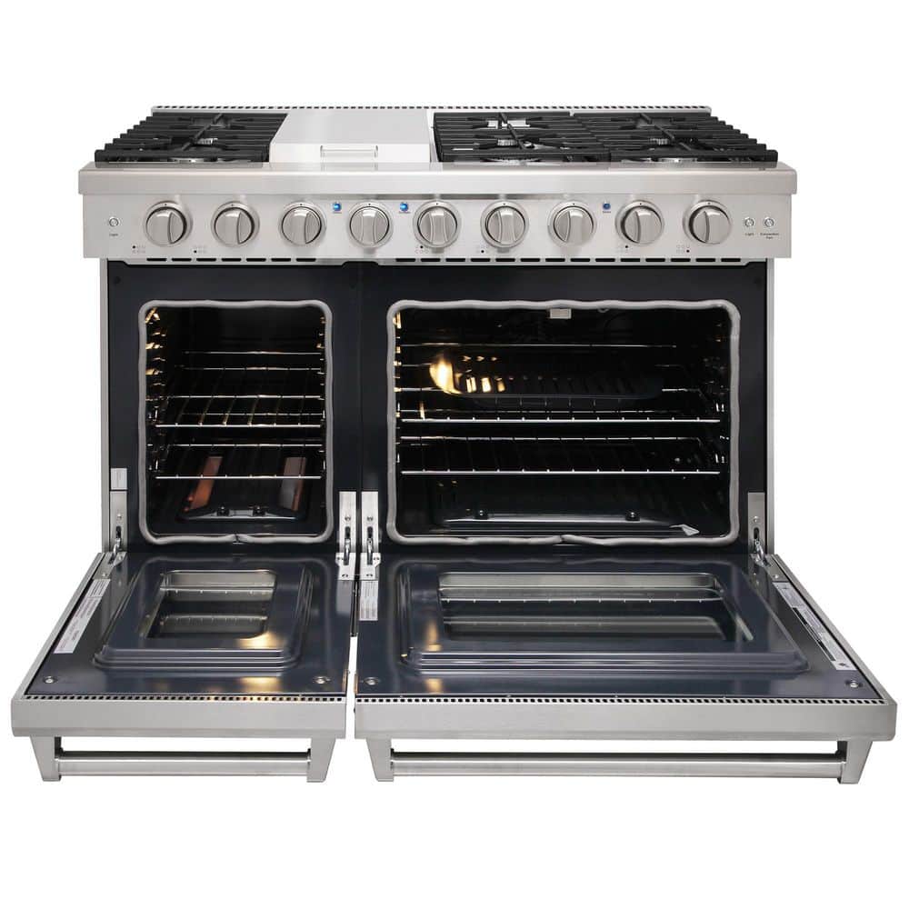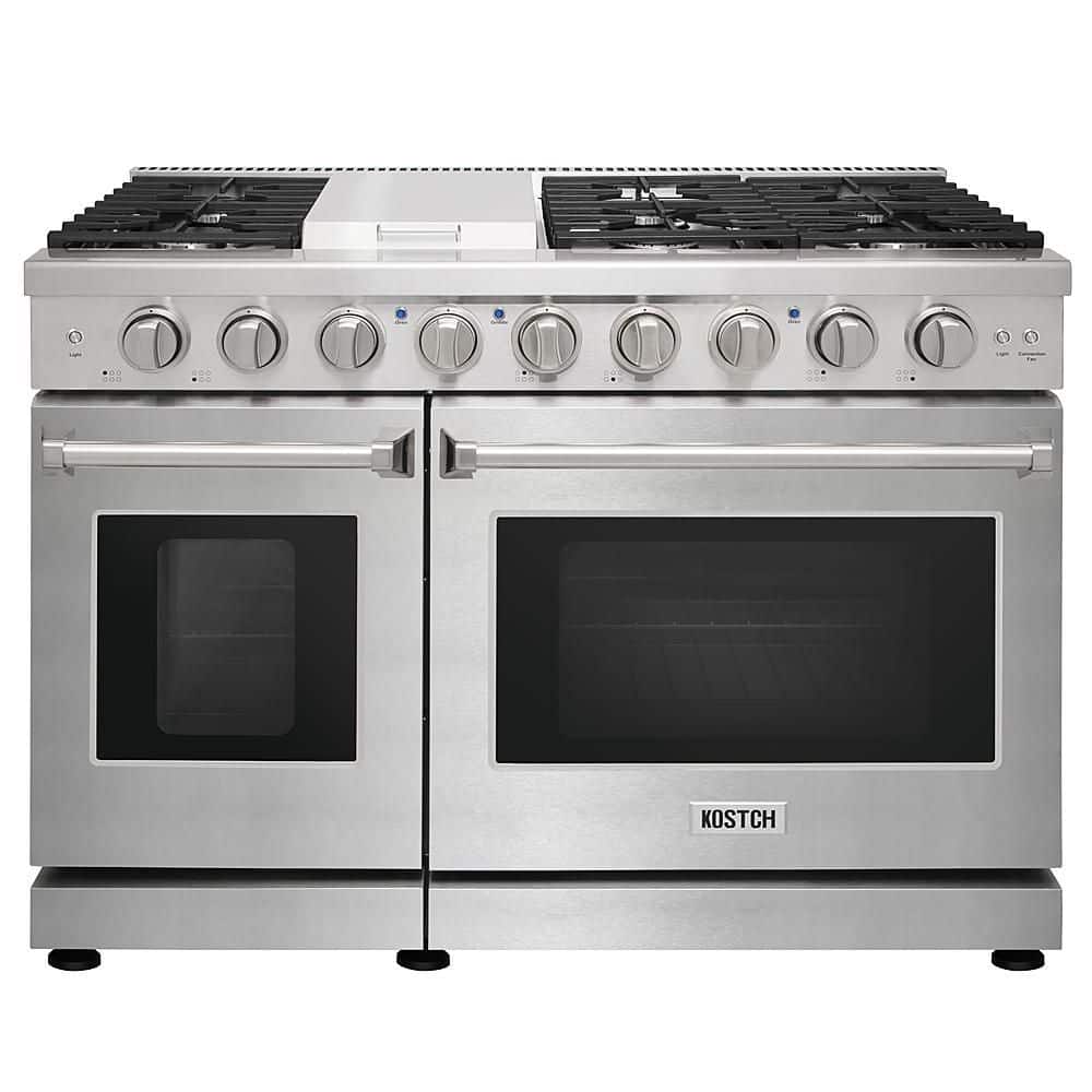 KOSTCH Propane-48 in. 6.8 cu. ft. 6 Burners Freestanding Double Oven Gas Range in Stainless Steel with Convection and Griddle