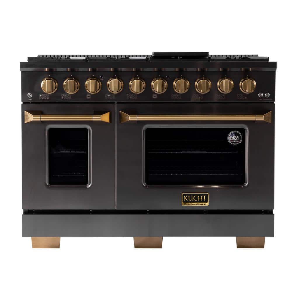Kucht Gemstone 48 in. 6.7 cu. ft. 8 Burners Propane Gas Range with Two Ovens - One Convection - in Titanium Stainless Steel