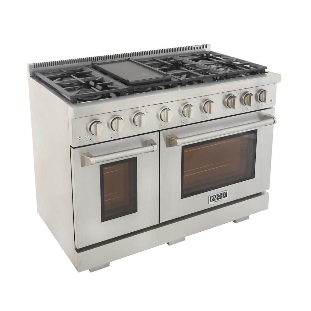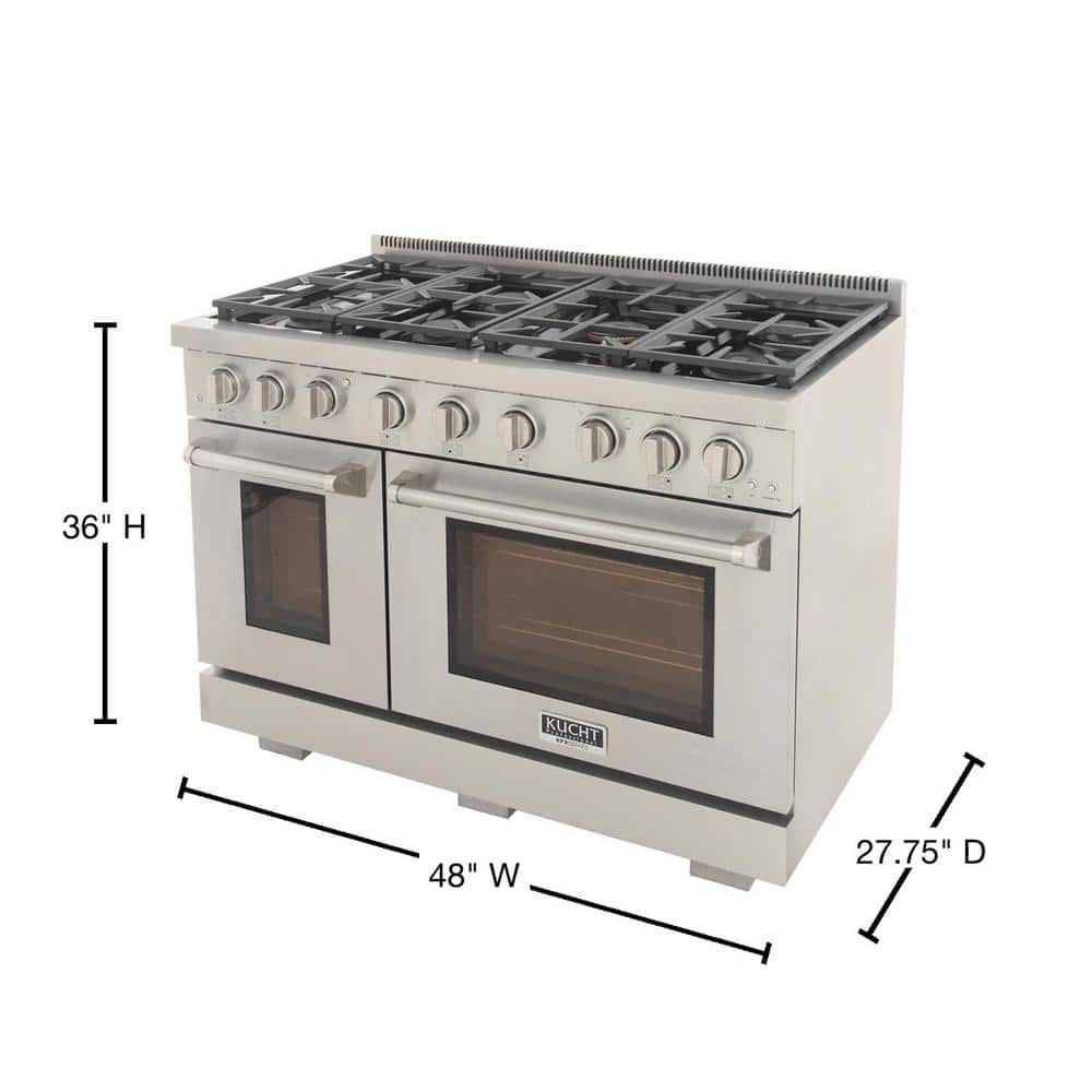 Kucht Professional 48 in. 6.7 cu. ft. Double Oven Propane Gas Range with 25K Power Burner Convection Oven in Stainless Steel